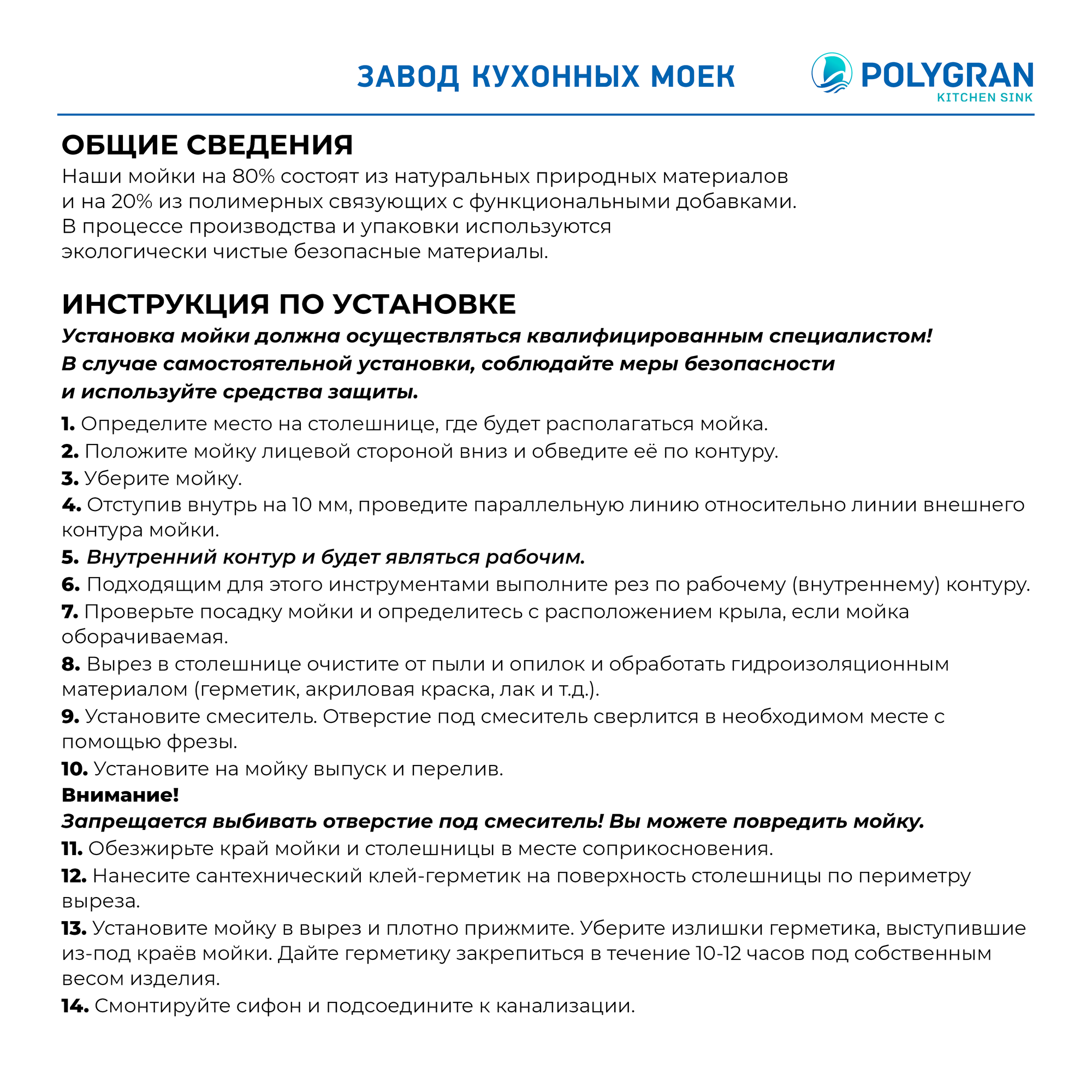 Мойки Polygran ATOL-520, мойка, мрамор, черный 16
