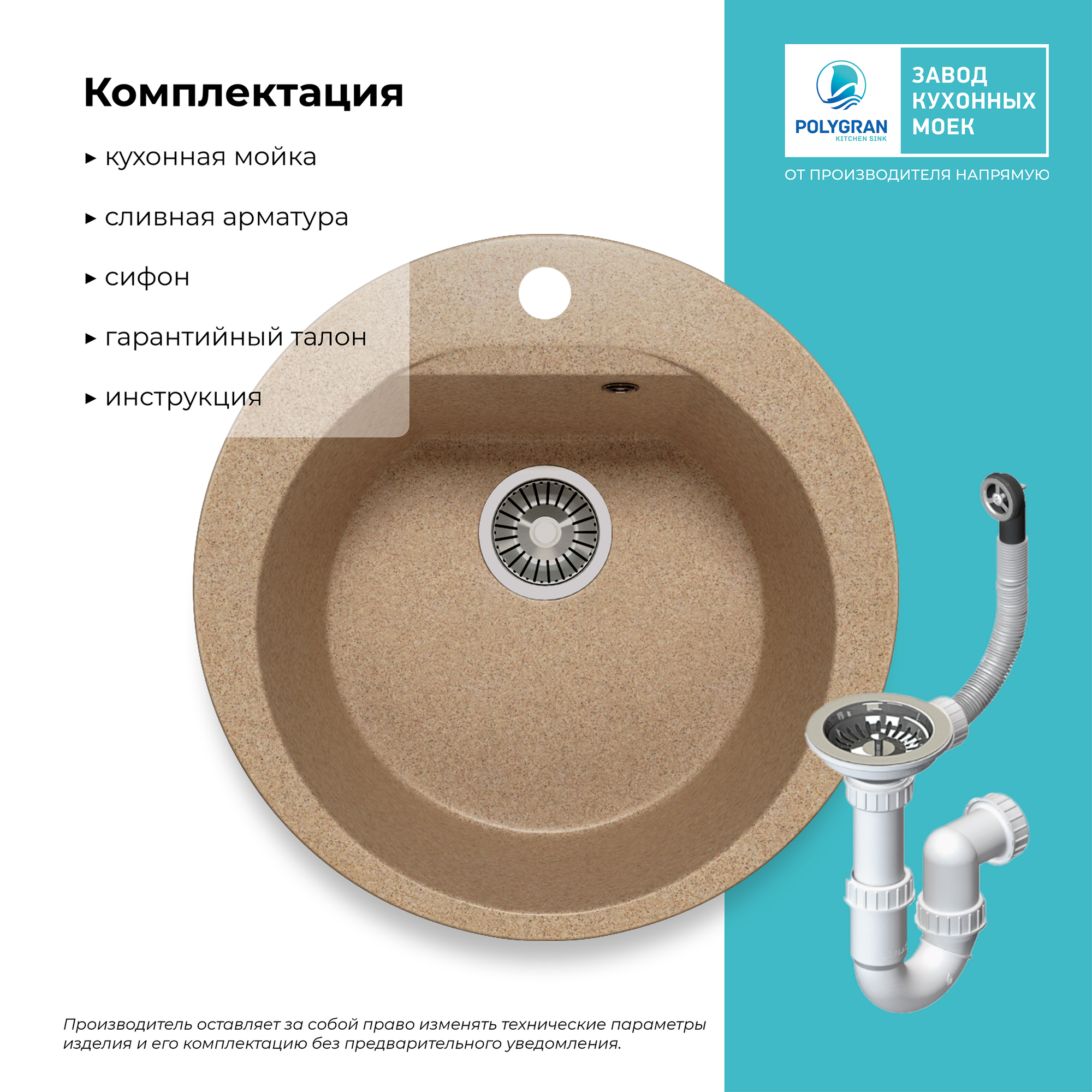 Купить Мойка для кухни каменная POLYGRAN ATOL-520, бежевая, врезная, круглая(№302 Песочный)