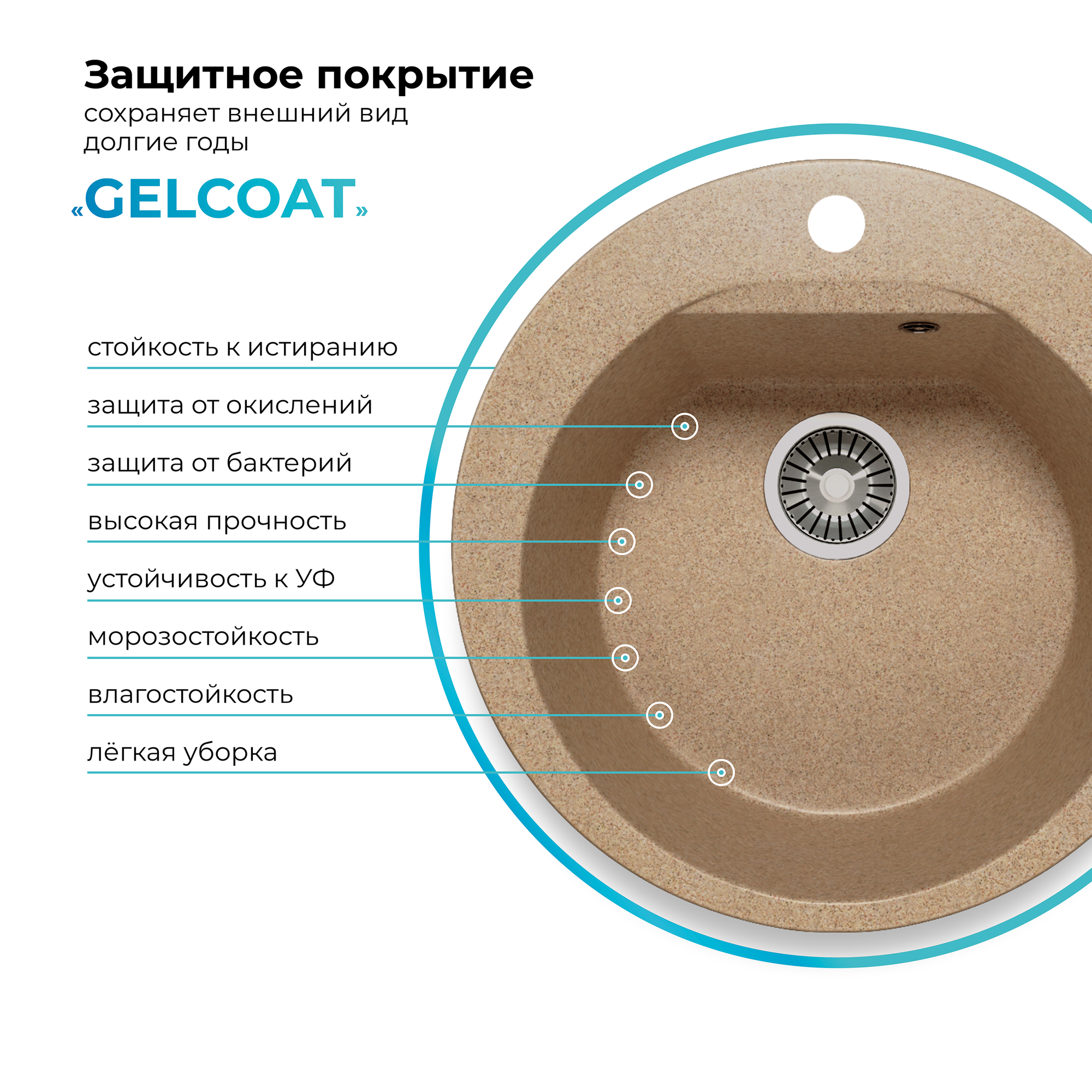 СохранитьМойка для кухни каменная POLYGRAN ATOL-520, бежевая, врезная, круглая(№302 Песочный) интересное: