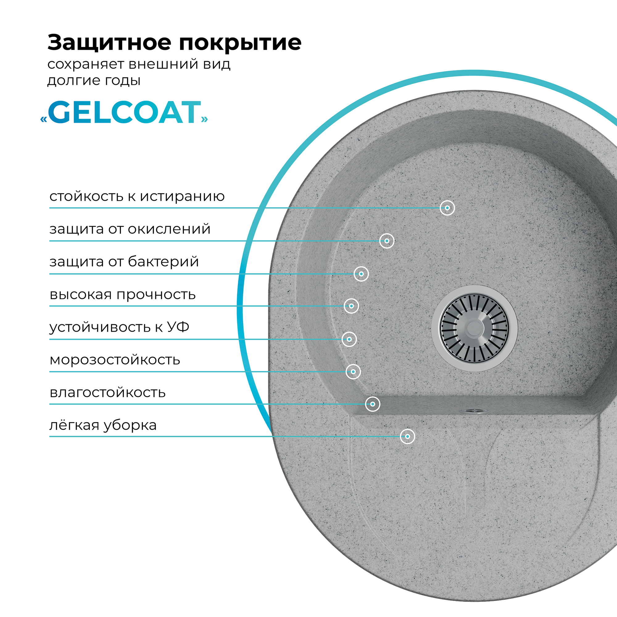 СохранитьМойка для кухни каменная POLYGRAN ATOL-620, серая, врезная, круглая, с крылом (№314 Светло-серый) интересное:
