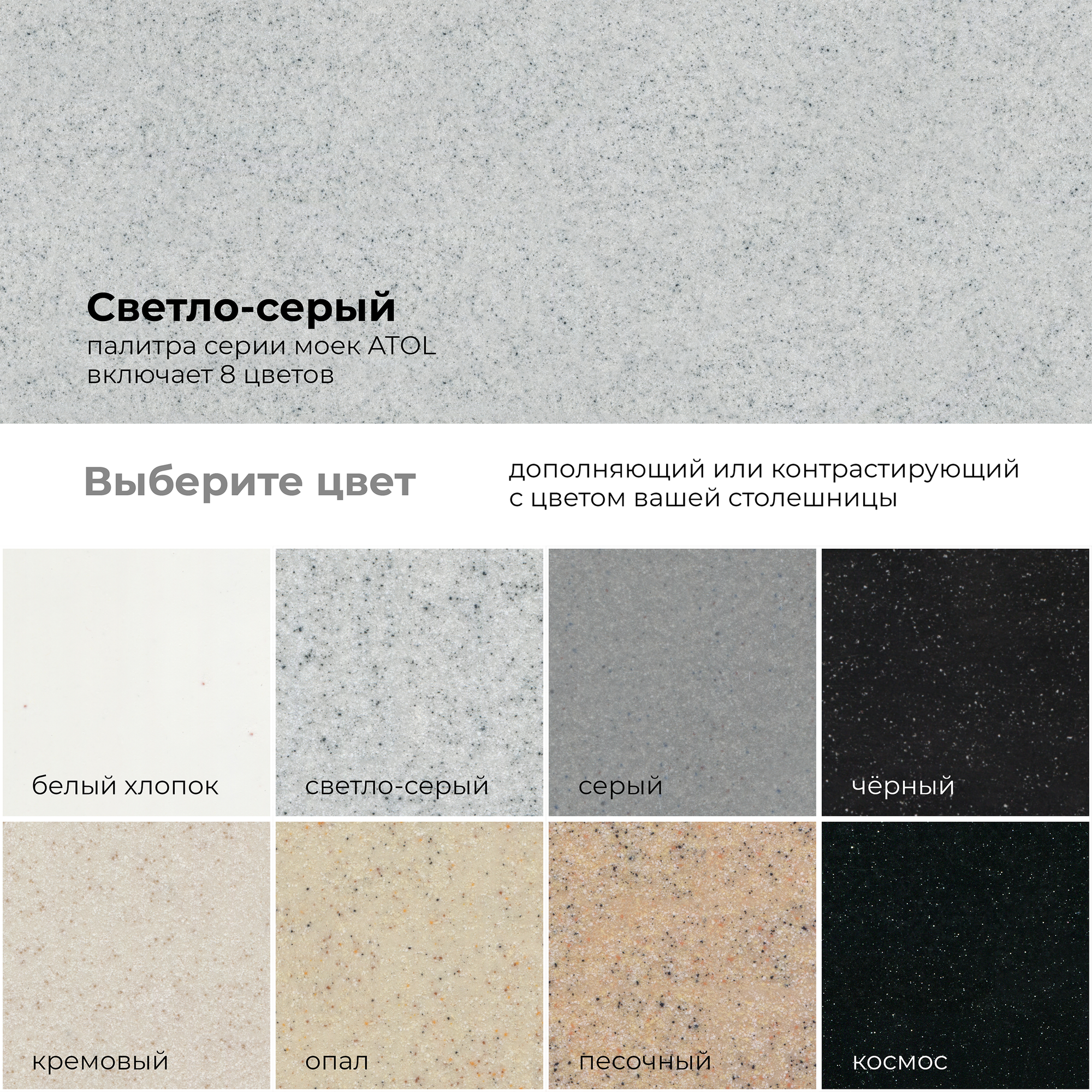 Купить Мойка для кухни каменная POLYGRAN ATOL-620, серая, врезная, круглая, с крылом (№314 Светло-серый)