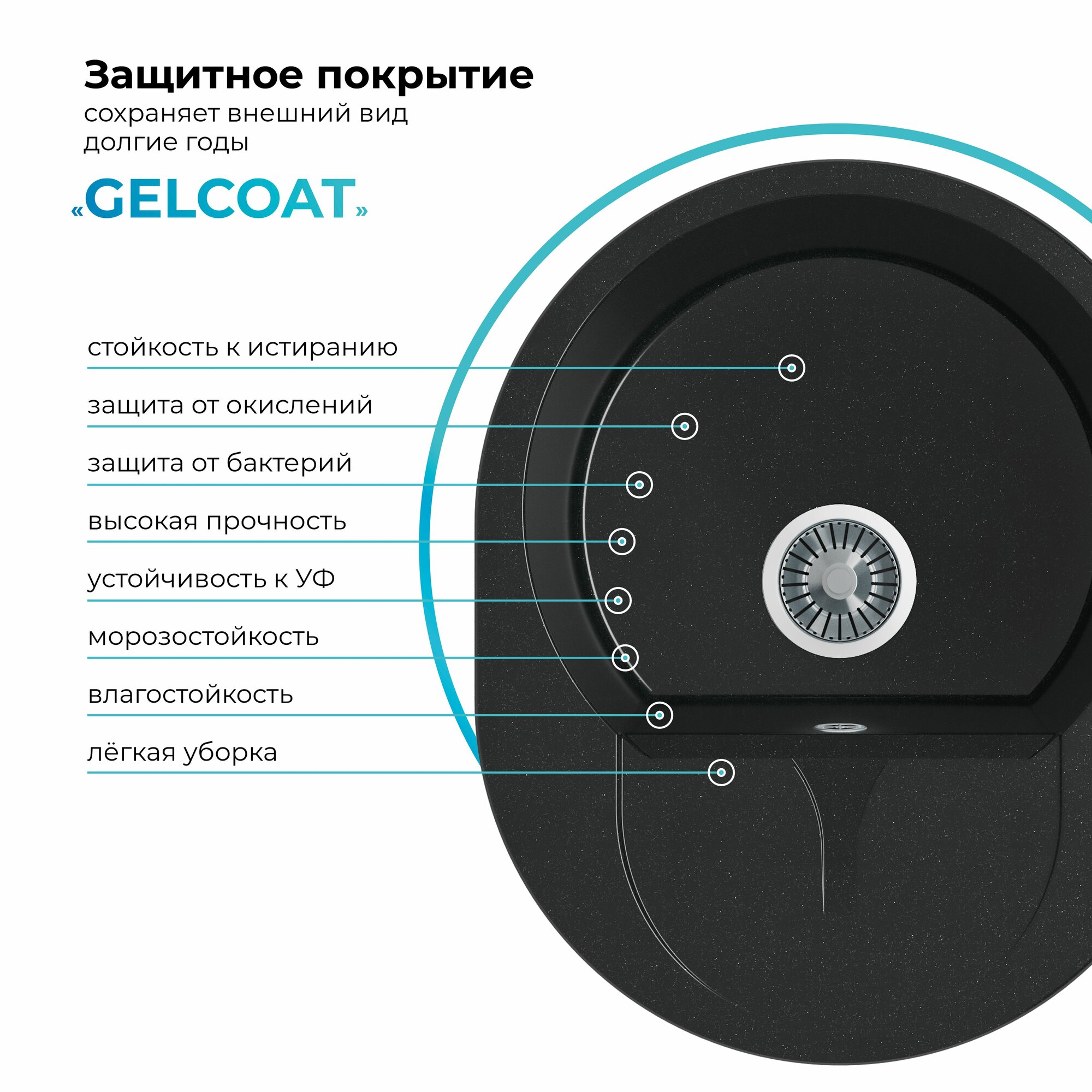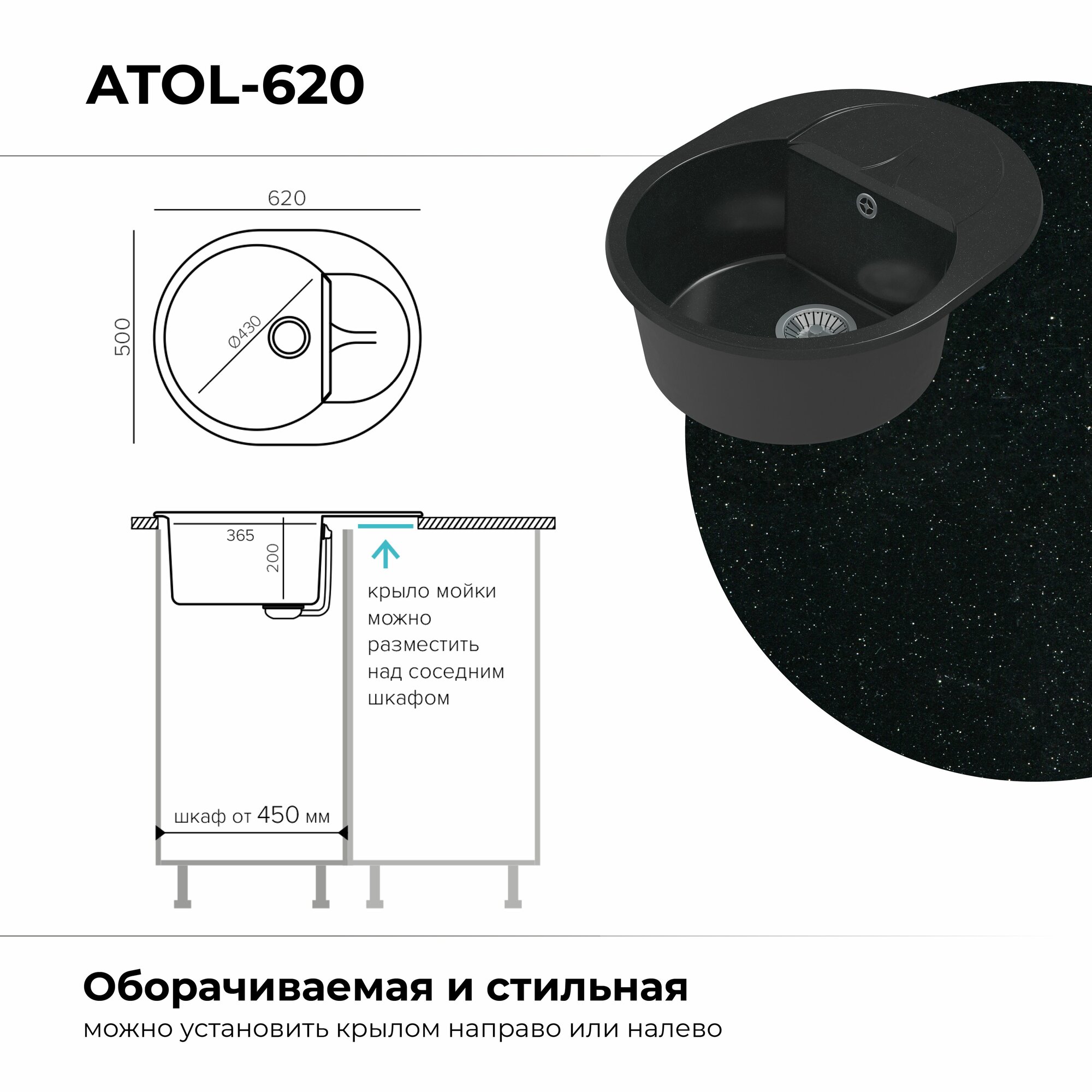 Мойки Polygran ATOL-520, мойка, мрамор, черный 16