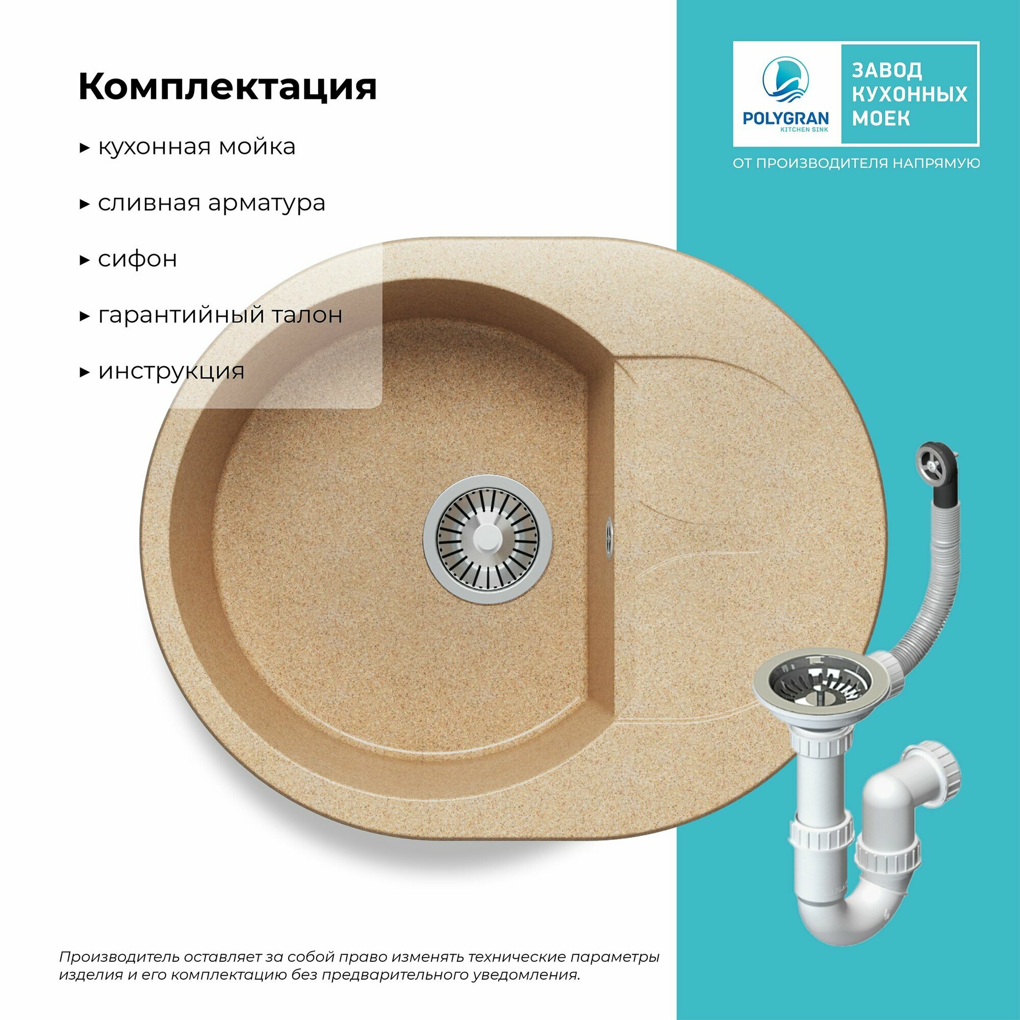 СохранитьМойка для кухни из искусственного камня POLYGRAN ATOL-620 (№302 Песочный) интересное: