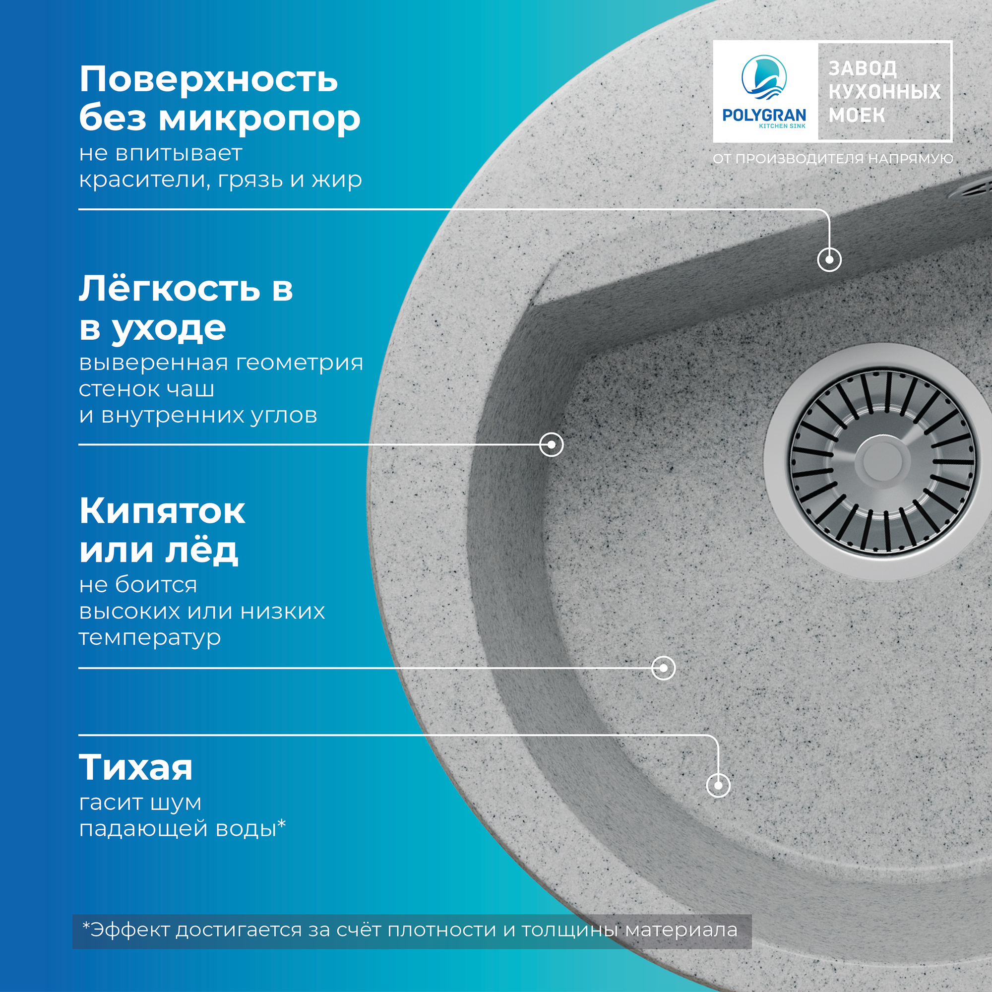 СохранитьМойка для кухни каменная POLYGRAN ATOL-460, серая, врезная, круглая (№314 Светло-серый) интересное:
