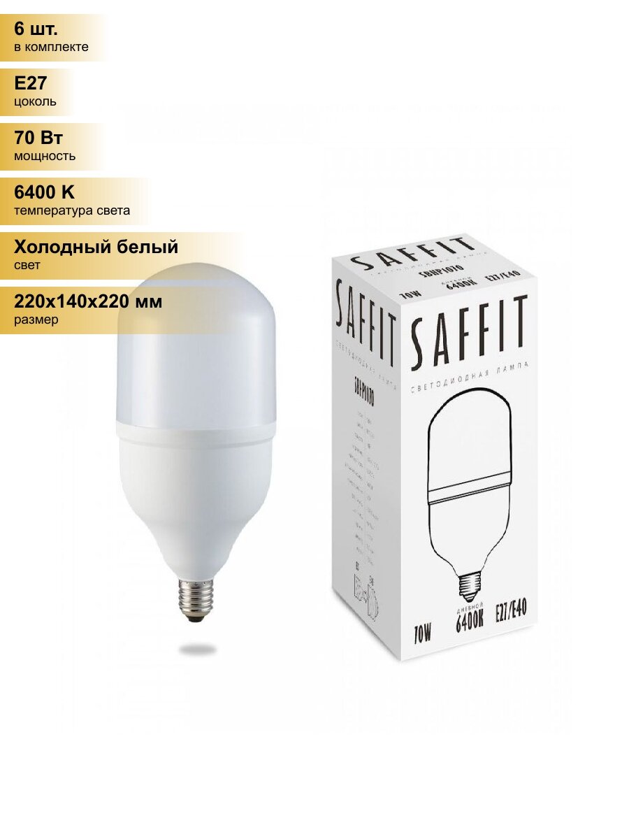 Купить (6 шт.) Светодиодная лампочка Saffit высокомощн. 70W(6500lm) E27-E40 6400K 6K 220x140 SBHP1070 55099 Холодный белый. Цоколь E27