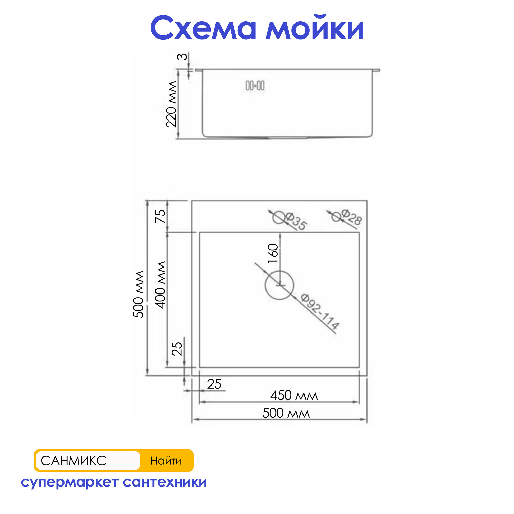 СохранитьМойка для кухни из нержавеющей стали 3мм врезная 50х50 графит Премиум AFLORN AF95050F интересное: