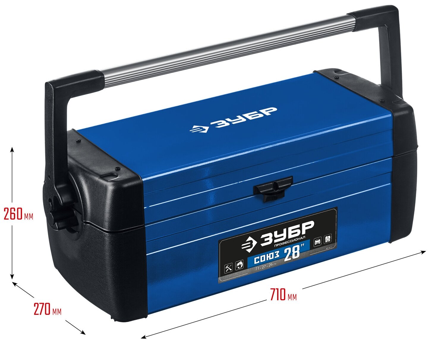 ЗУБР СОЮЗ-28, 710 x 270 x 260 мм, (28″), металлический ящик для инструментов, Профессионал (38151-28)