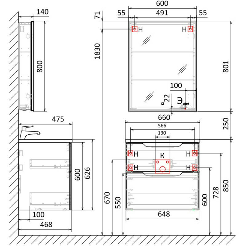 | Назначение | тумба для ванной комнаты / под раковину |