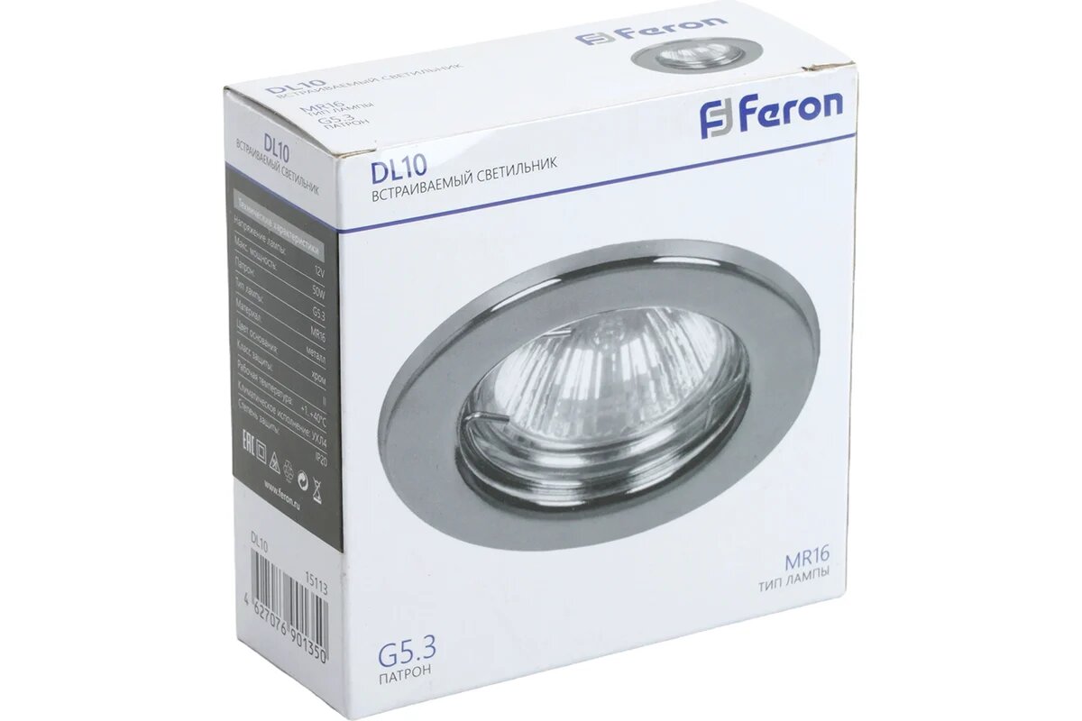 Светильник Feron Светильник потолочный встраиваемый, MR16 G5.3 хром, DL10, Feron, 15113, G5, 50 Вт, цвет плафона: хром, 10 шт.