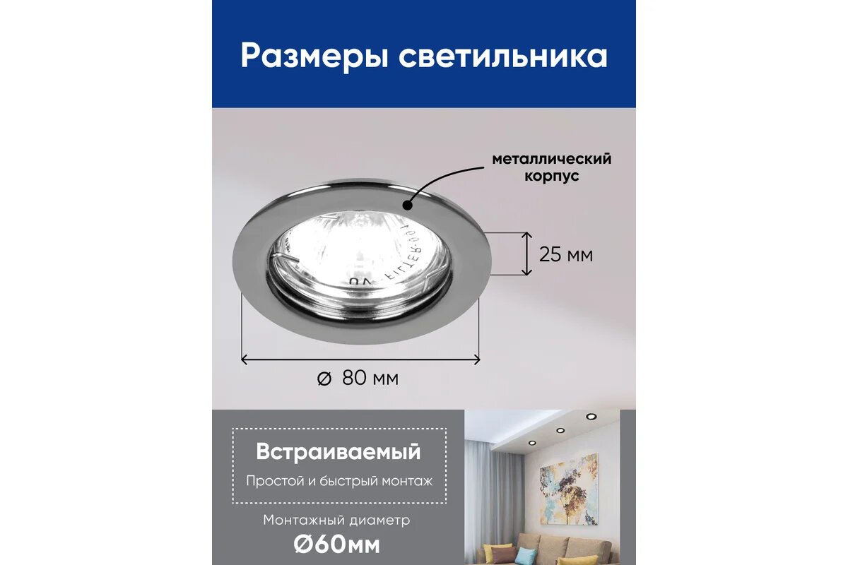 Светильник встраиваемый неповоротный под MR16 круглый G5.3 50Вт, 12/230В, IP20, хром