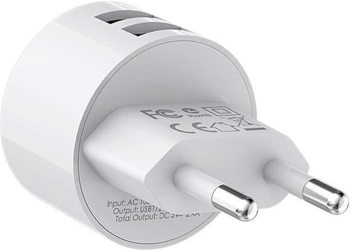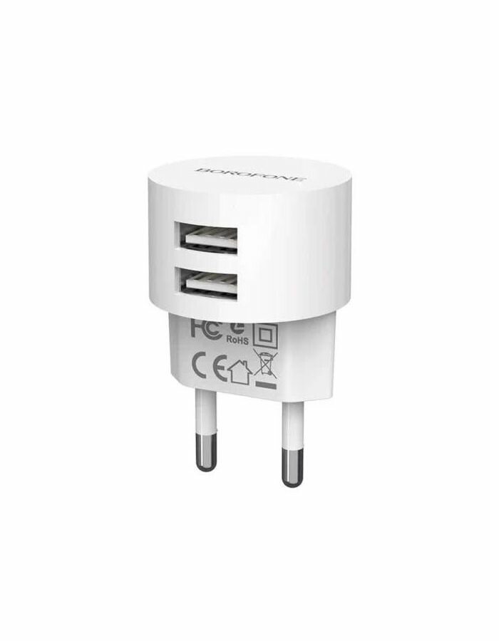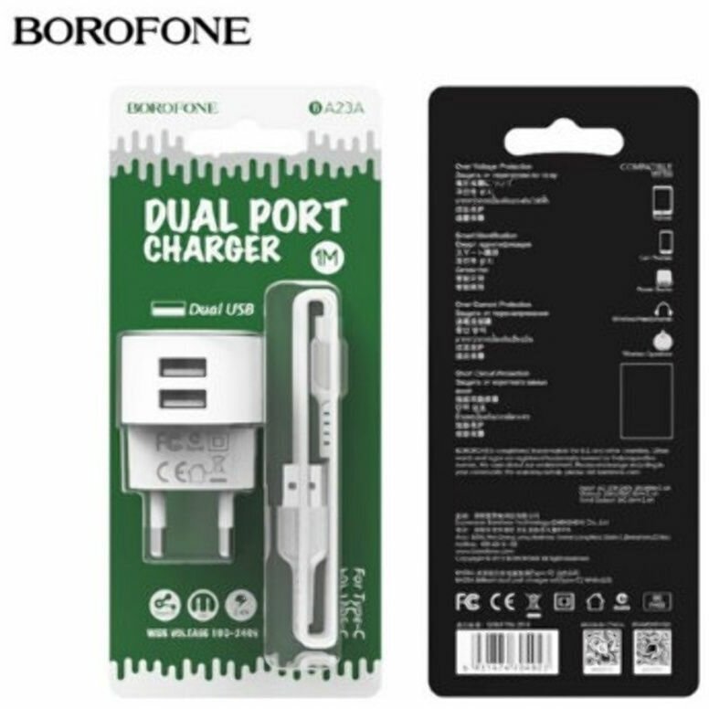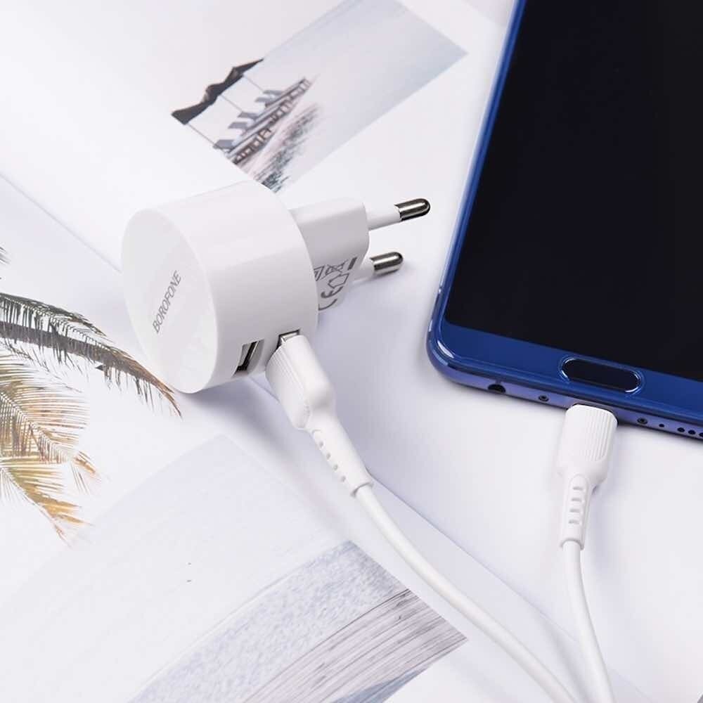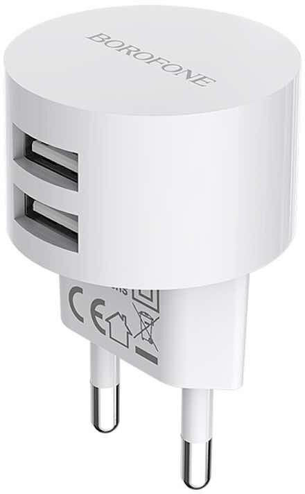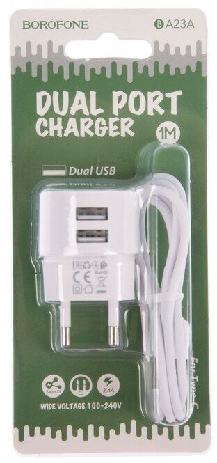 Borofone Сетевое зарядное устройство Borofone BA23A, 2xUSB, 2.4 А, кабель Type-C, 1 м, белое