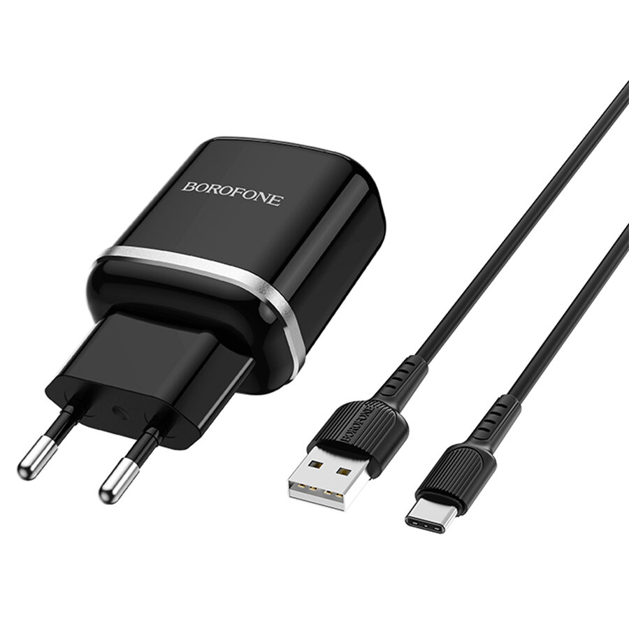 Купить Сетевой адаптер питания USB-Af + кабель Type-Cm Borofone BA36A HighSpeed Black зарядка 3А 18W QC3.0 - чёрный