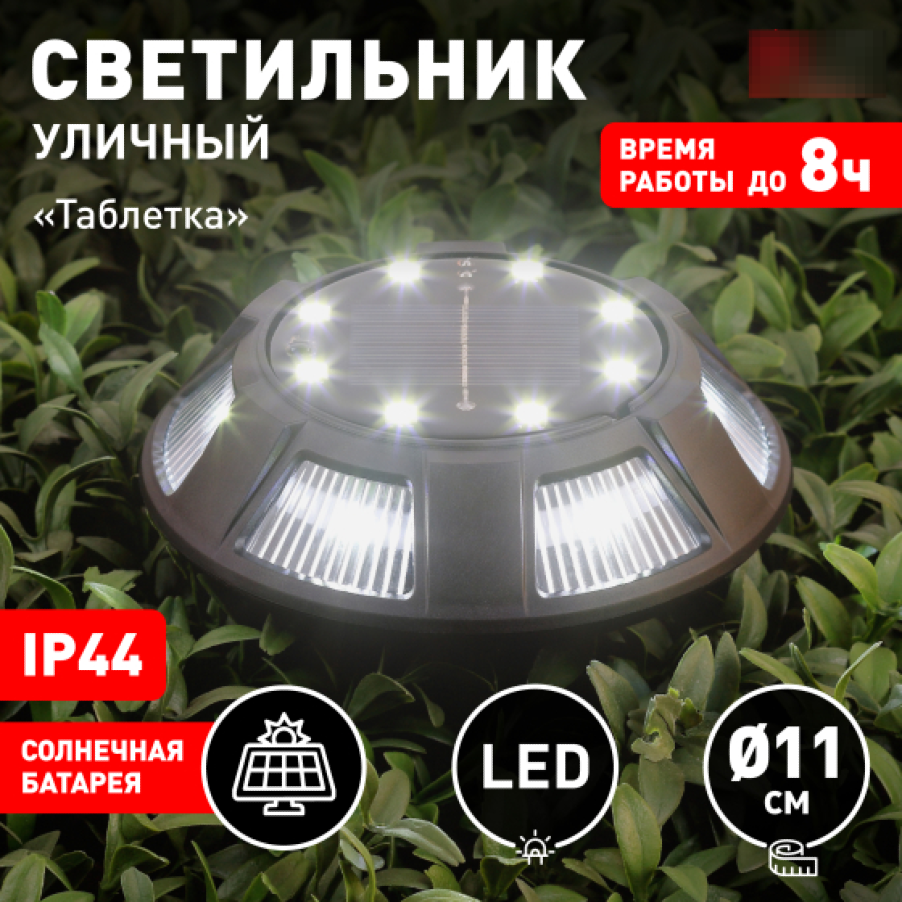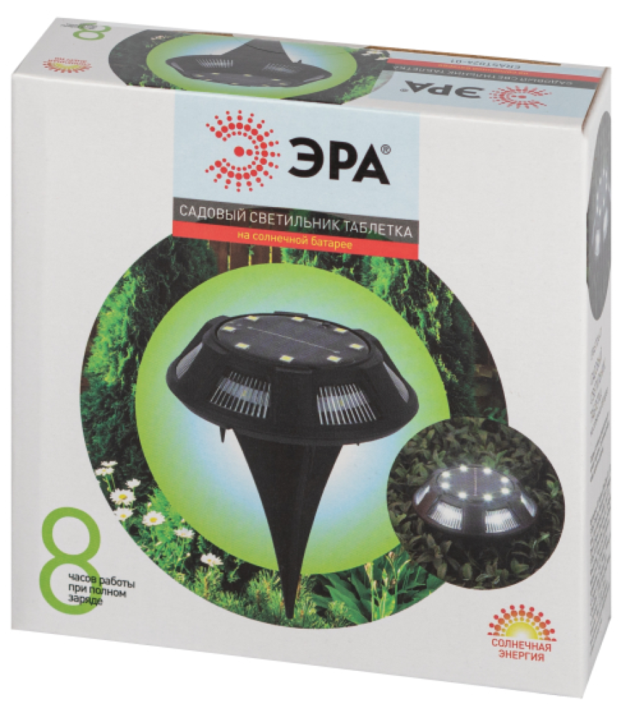 СохранитьУличный светильник ЭРА ERAST024-01 Таблетка грунтовый с встроенным аккумулятором на солнечной батарее в корпусе из стали/пластика, 110x110мм, IP44 / освещение интересное: