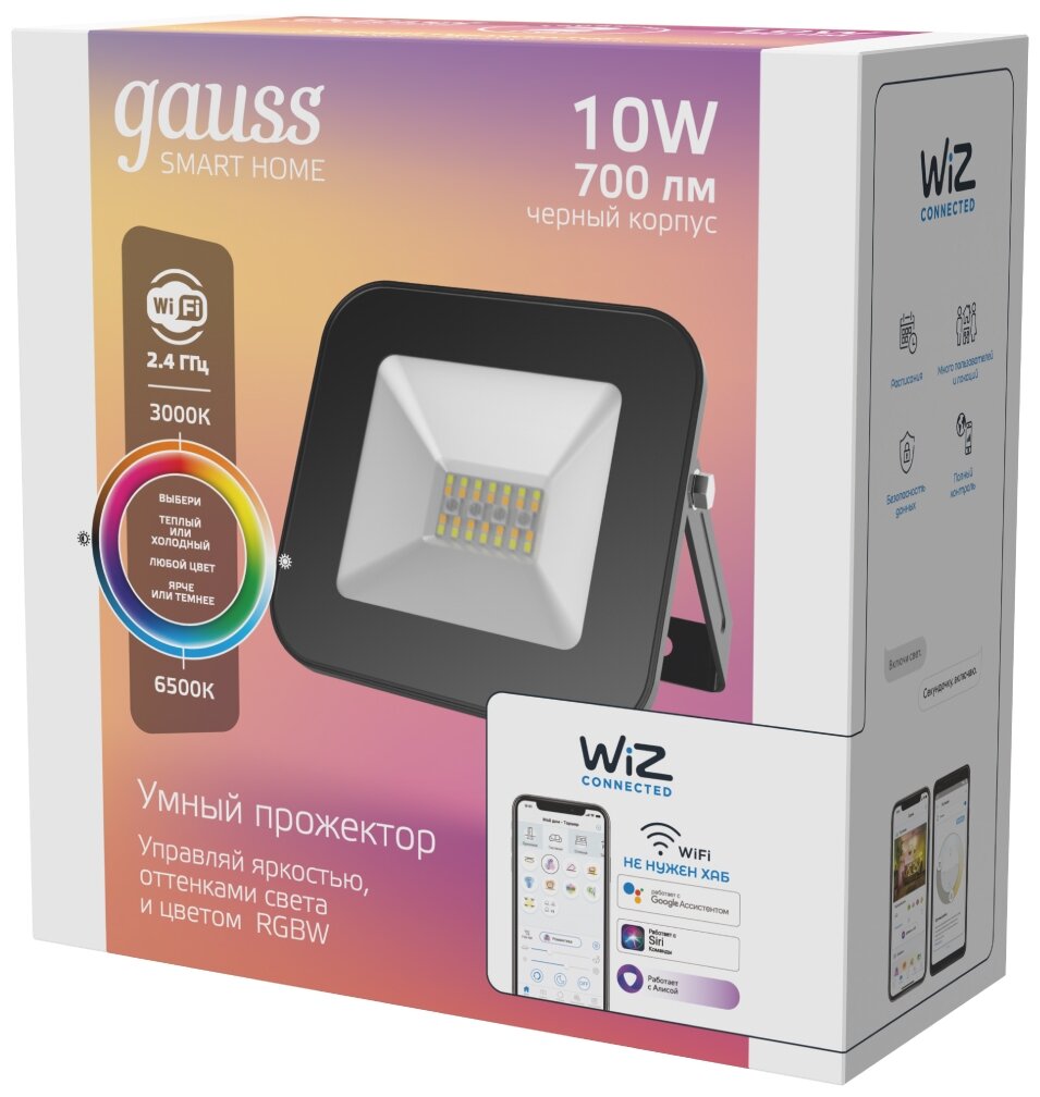 Умный прожектор SmartHome 10W 700lm 3000-6500K 220V IP65 RGBW+изм.цв.темп.+диммирование Gauss