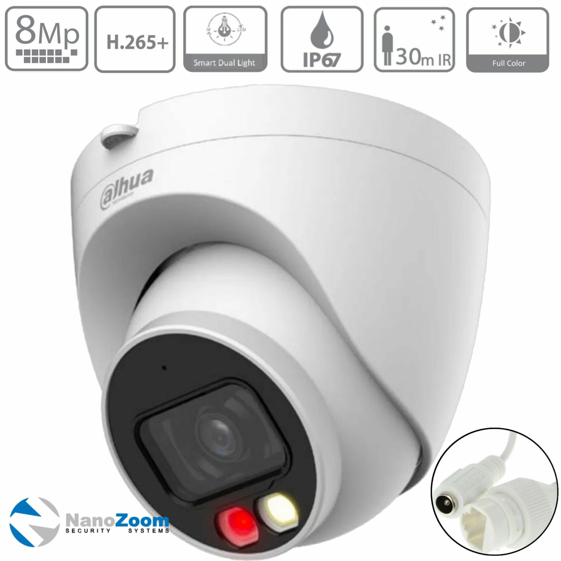 Купить Dahua DH-IPC-HDW2849TP-S-IL-0280B 8Мп 2,8 мм камера видеонаблюдения IP внутренняя и уличная, цифровая купольная IP-видеокамера для улицы и помещений Full color ИК/LED подсветка, 3840x2160, CMOS 1/2.7"