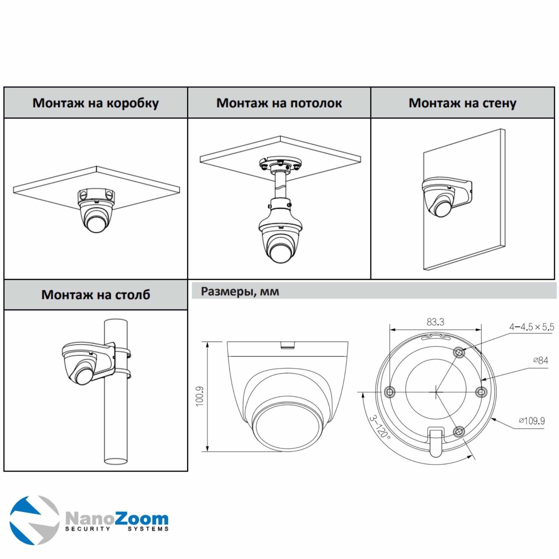 IP-Камера Dahua уличная купольная IP-видеокамера 2Мп 1/2.7" CMOS объектив 2.8мм
