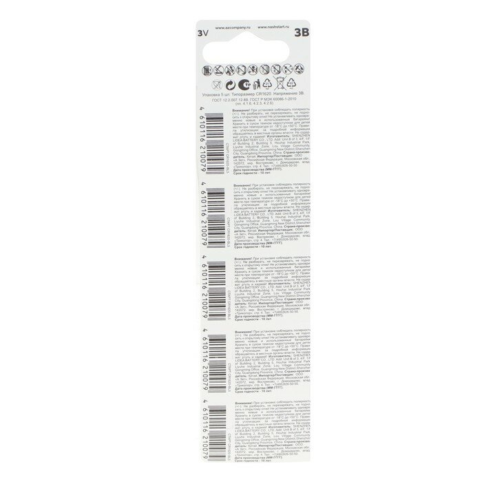 Ниже Вы можете прочитать отзывы на Батарейка литиевая старт, CR1620-5BL, 3В, блистер, 5 шт., ознакомится с подробными характеристиками, посмотреть интересные обзоры и фотографии на Батарейка литиевая старт, CR1620-5BL, 3В, блистер, 5 шт..