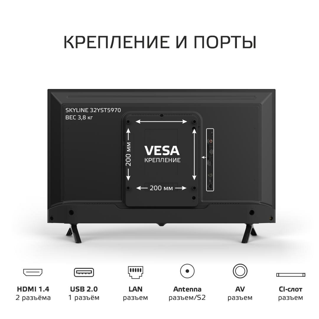 СохранитьТелевизор SKYLINE 32YST5970 / SMART TV (Android v.11) / диагональ 32", черный интересное:
