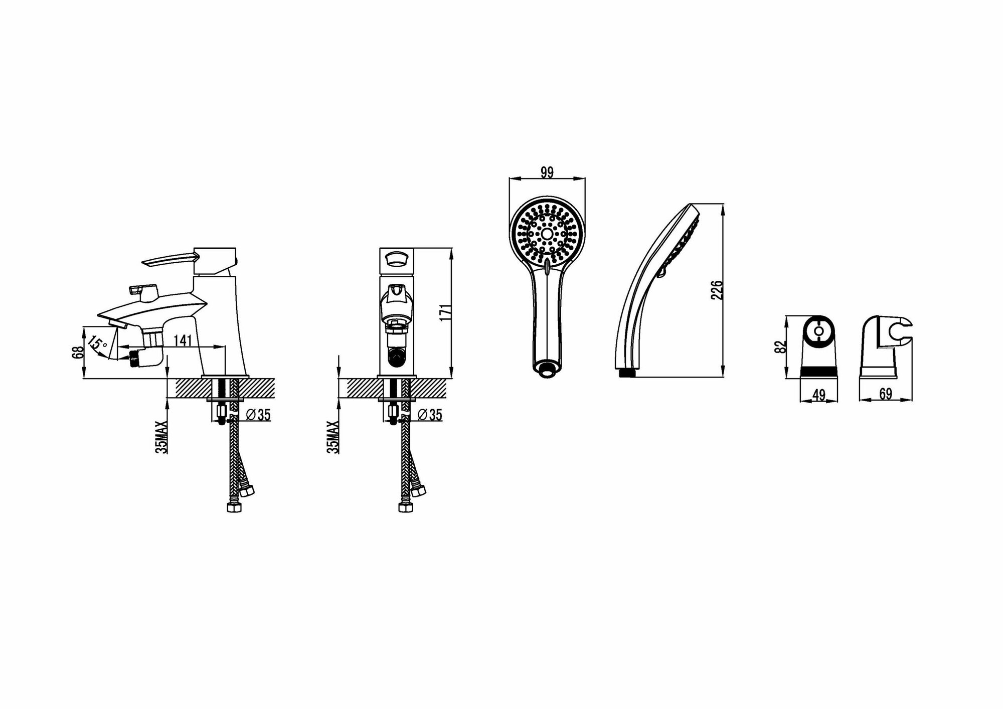 Lemark Смеситель Lemark Atlantiss LM3215C встраиваемый на борт ванны, хром
