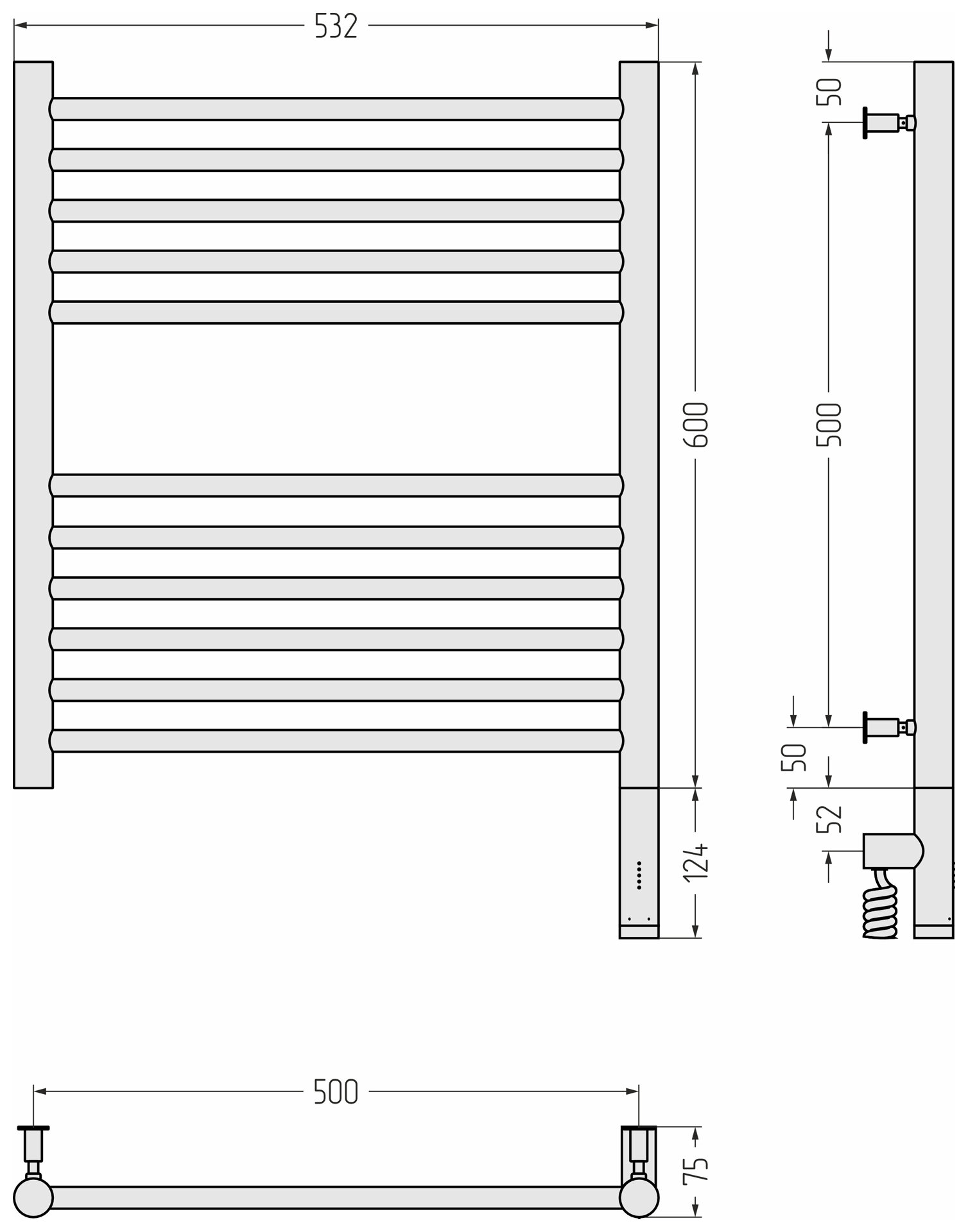 Электрический полотенцесушитель Сунержа Богема 3.0 прямая 600х500 птэн без покрытия