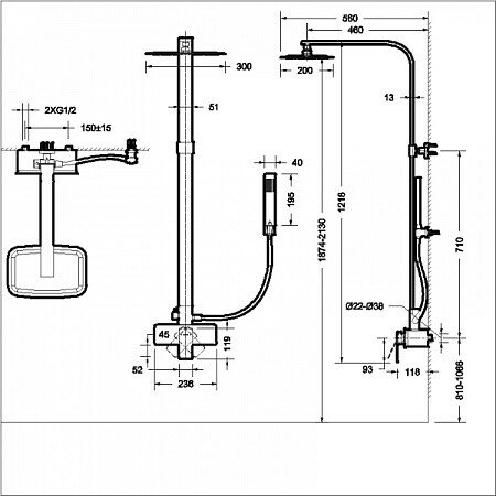 | Форма верхнего душа | прямоугольная |