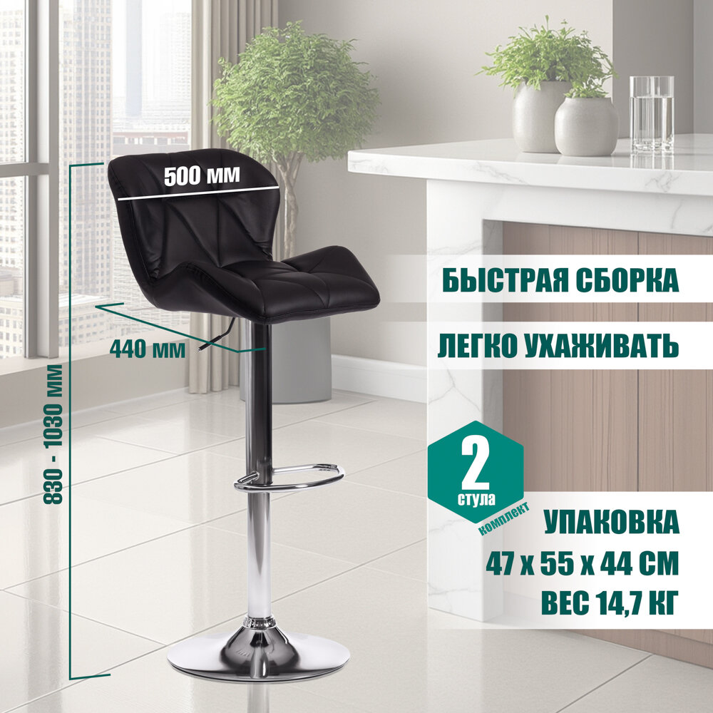 Стул барный Tetchair BIAGGIO (mod. KY717), металл/экокожа, 44*50*83-103 см, черный/хром (2шт/уп)