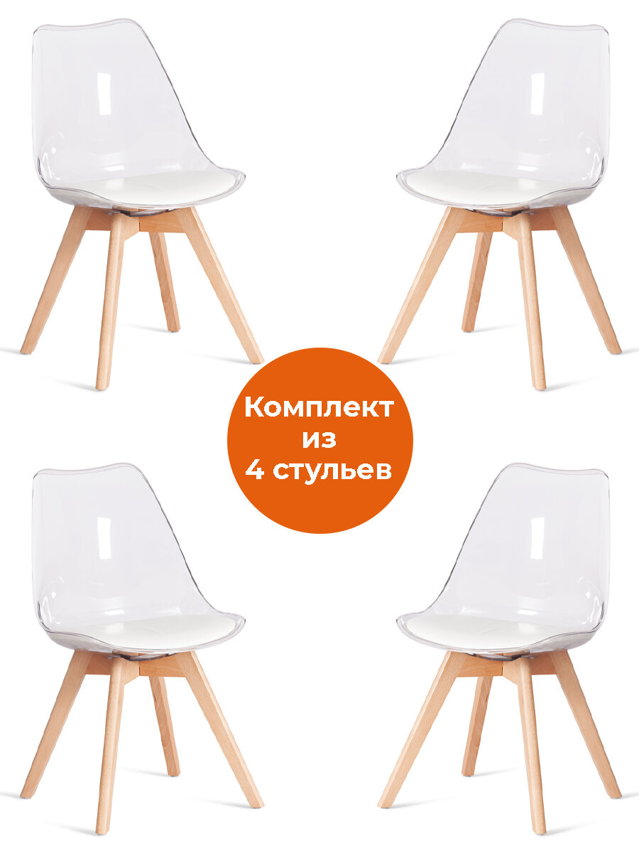 Купить Комплект стульев для кухни TetChair TULIP (mod. 73-1), 4 шт, дерево/пластик, прозрачный