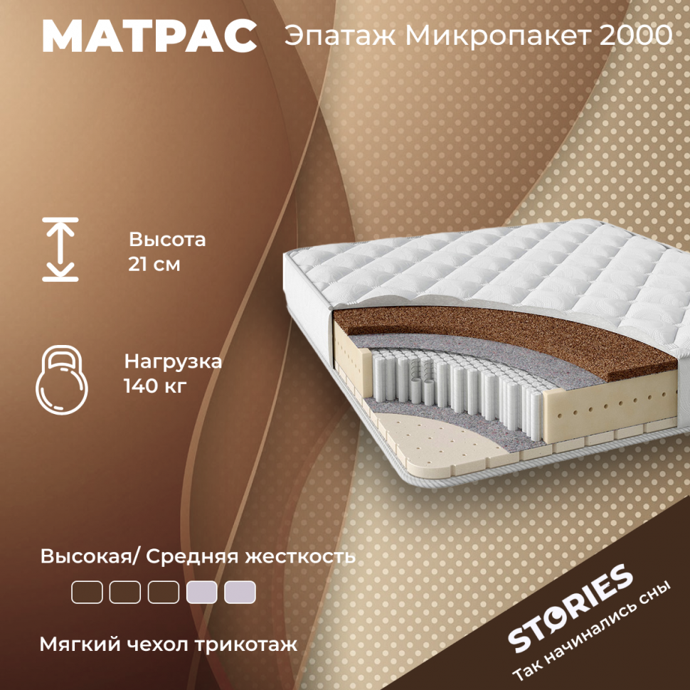 Матрас Stories Эпатаж Микропакет 2000 140х200 см, независимый пружинный блок S2000, трикотаж