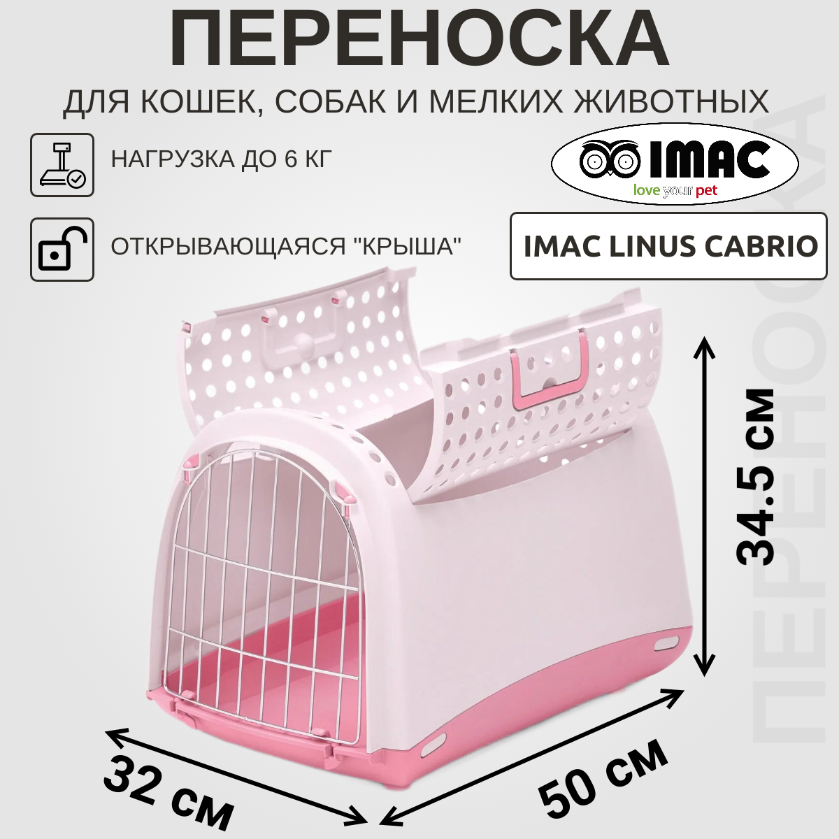 Imac Linus Cabrio Переноска для кошек и мелких собак 50 х 32 х 34,5 см., Светло-розовый