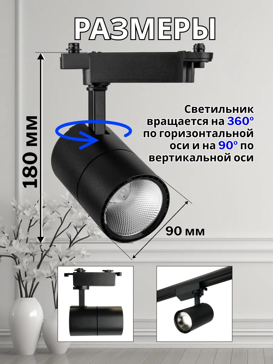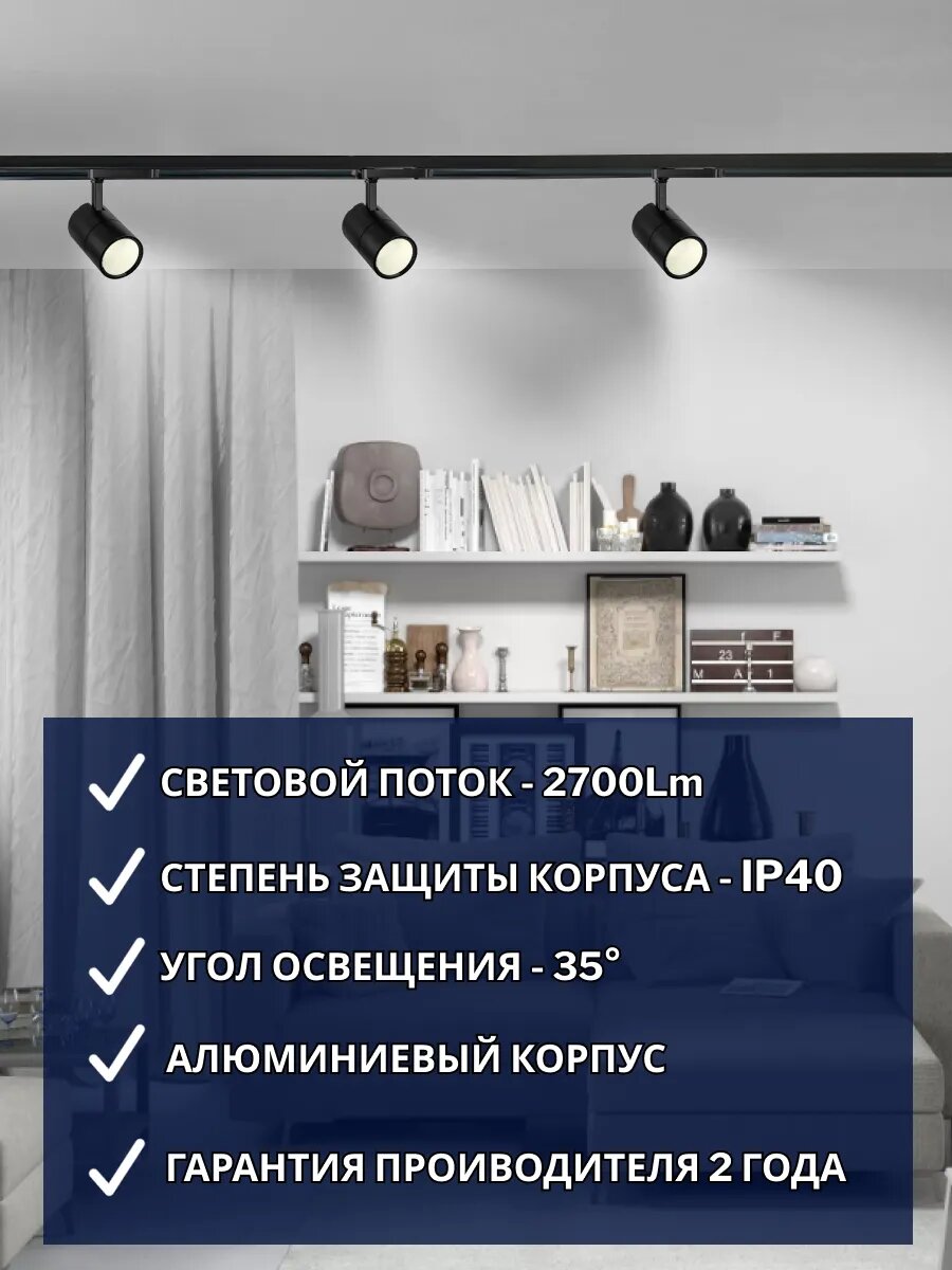 Светильник трековый светодиодный на шинопровод 30W, 2700 Lm, 4000К, 60 градусов, черный, AL103 со встроенным драйвером серия MarketBright