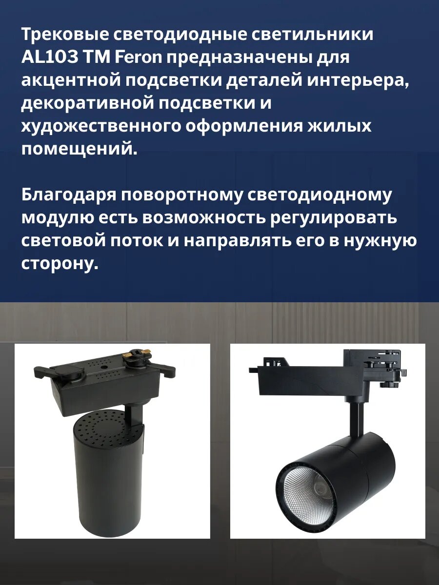 Светодиодный светильник Feron AL103 трековый однофазный на шинопровод 30W 4000K, 60 градусов, черный серия MarketBright