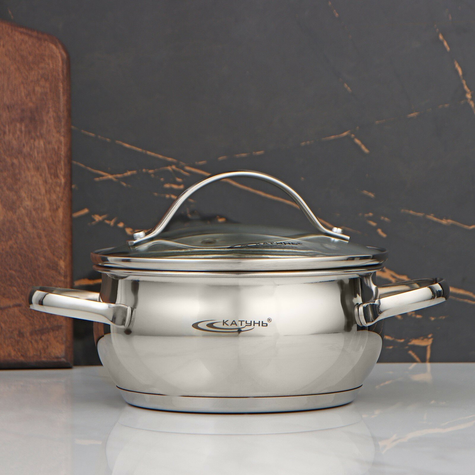 Катунь Кастрюля «Медея», 3,2 л, d=20 см, капсульное дно, стеклянная крышка, индукция
