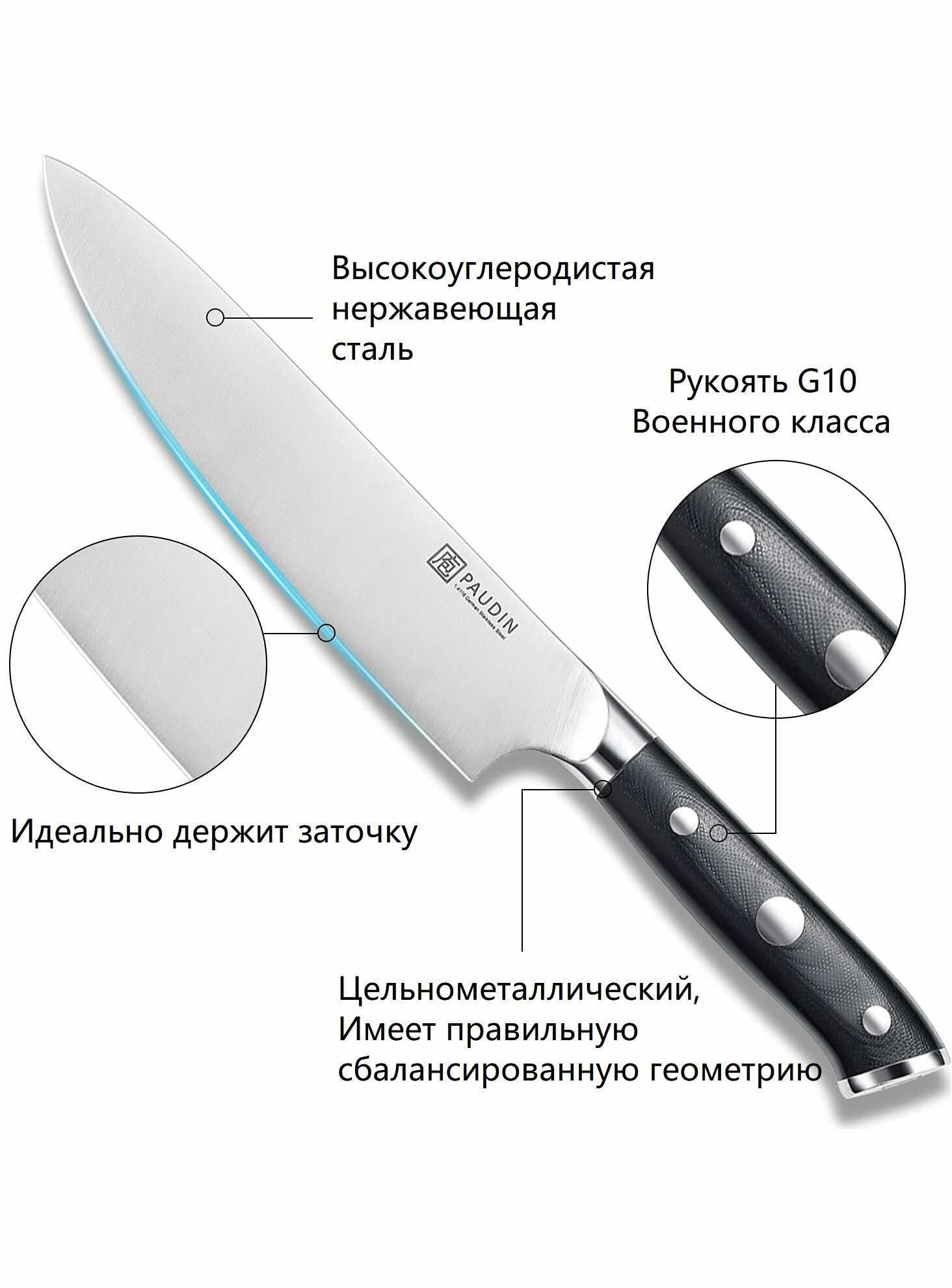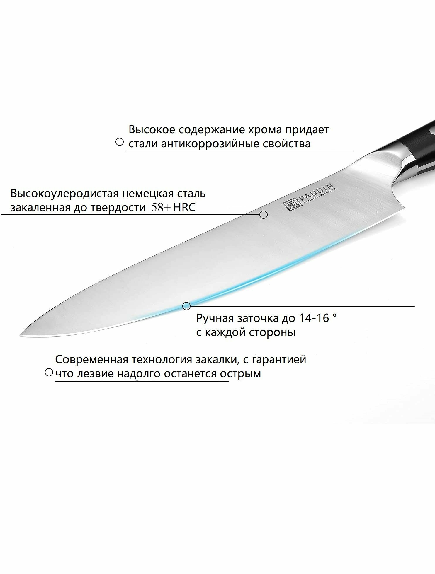PAUDIN Pro Нож кухонный профессиональный разделочный шеф повара лезвие 20 см
