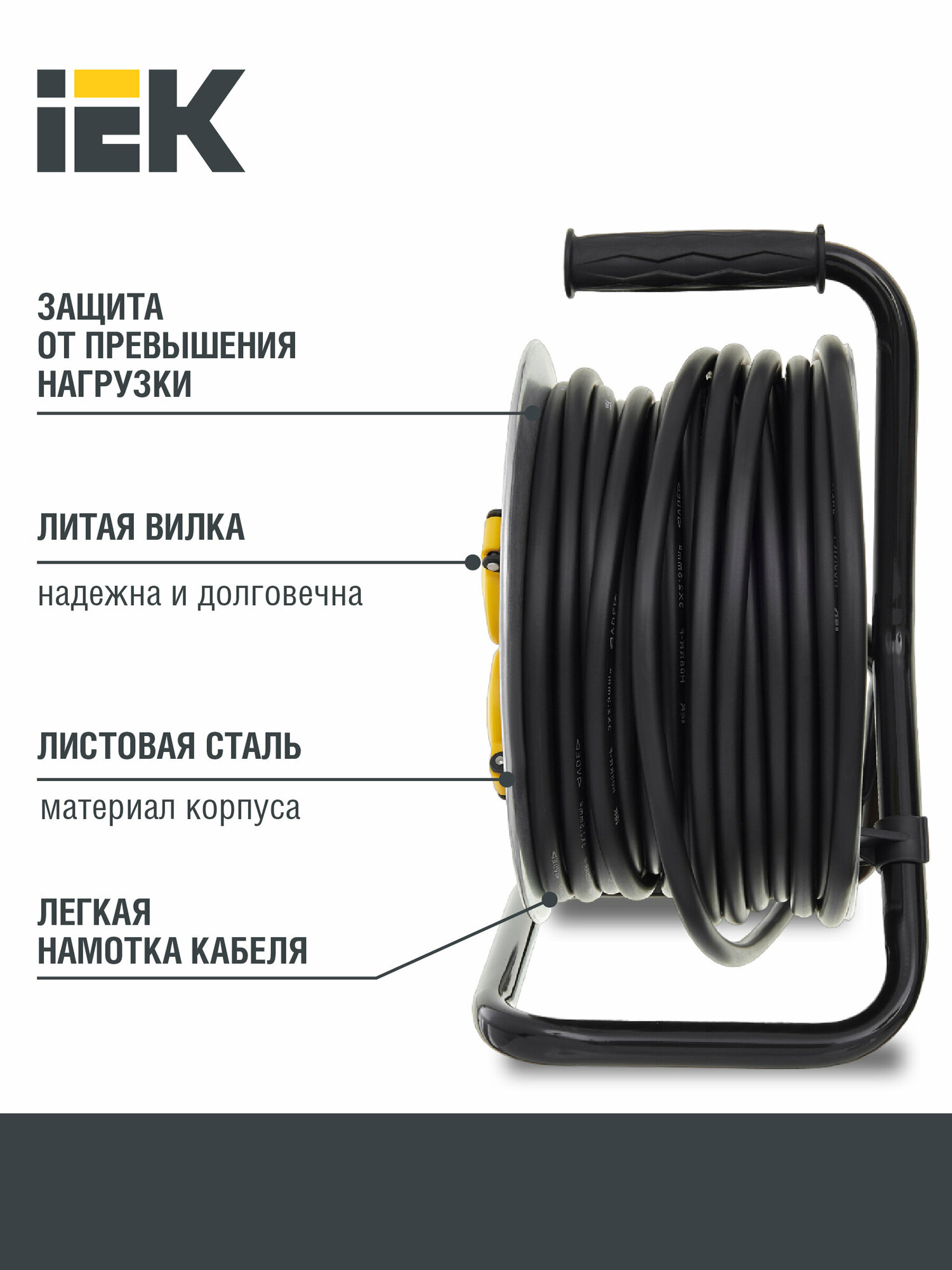 Удлинитель на катушке iEK Professional 4 розетки с заземлением, IP44, 3 x 2.5 мм, 30 метров