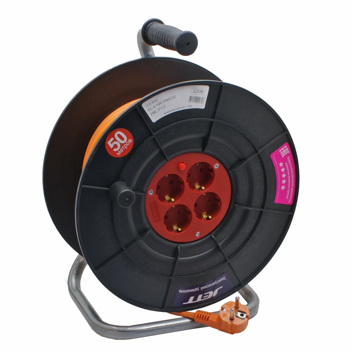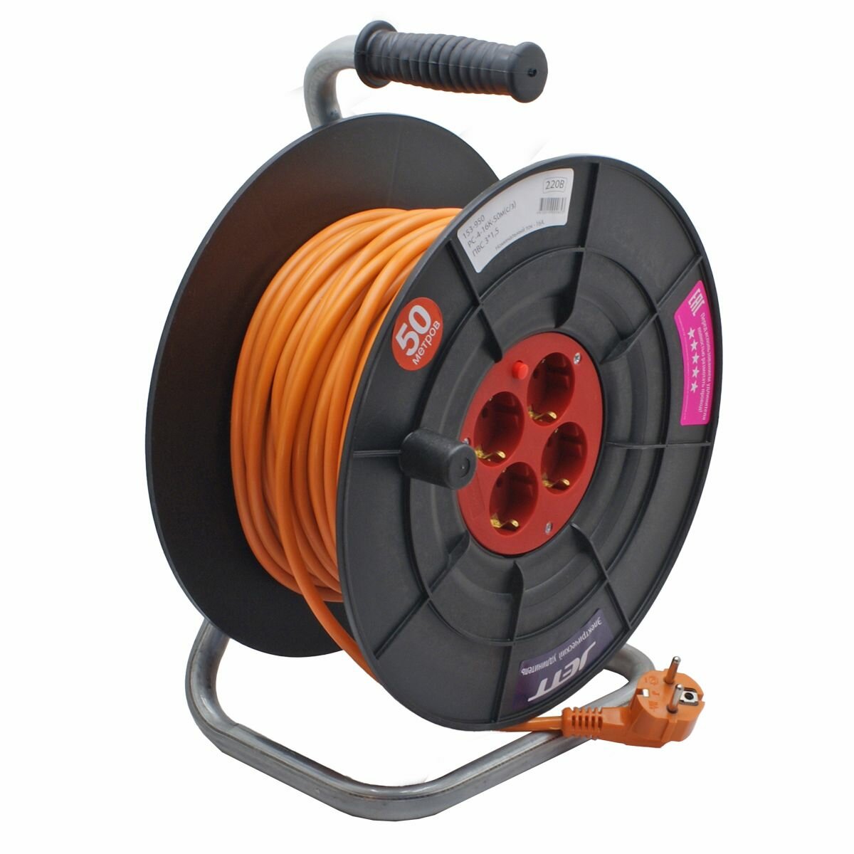 Удлинитель на катушке силовой Jett 4 розетки 30м 153-930 10А с/з 30 м