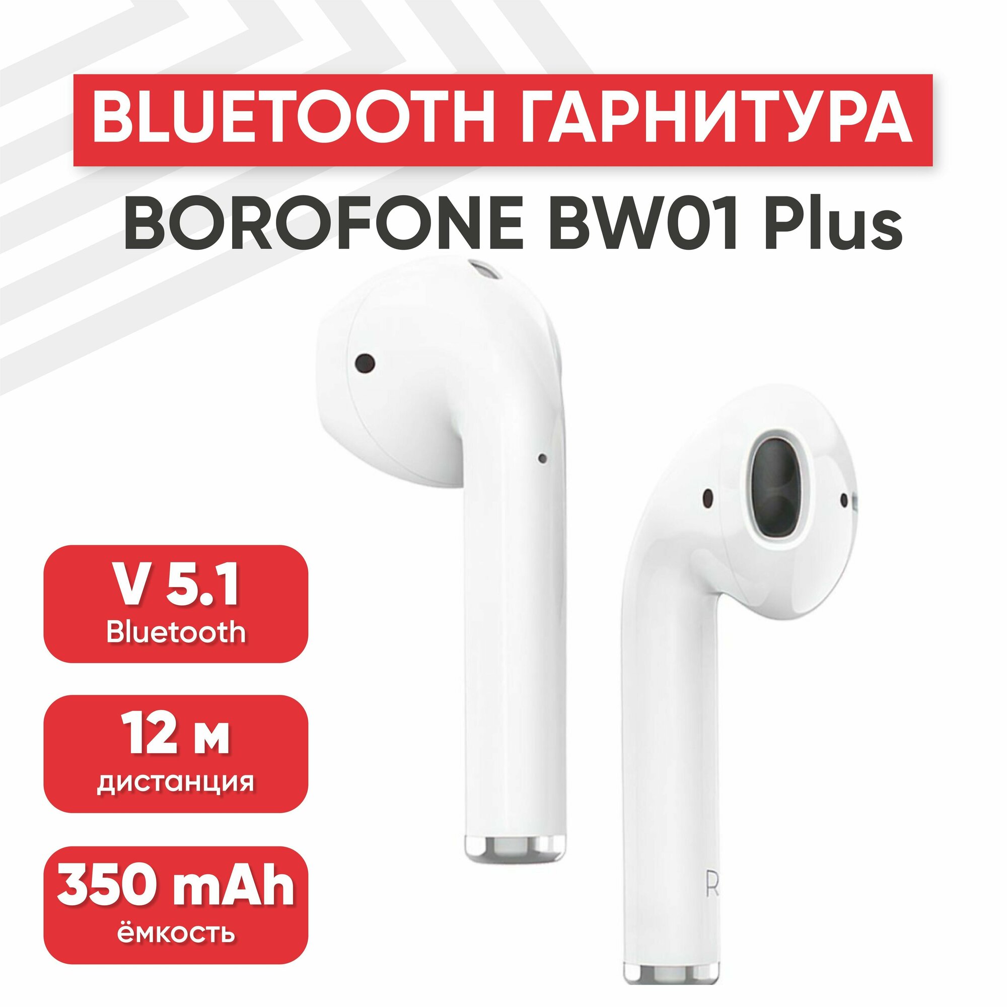 TWS Bluetooth гарнитура BOROFONE BW01 Plus BT 5.1, вкладыши (белый)