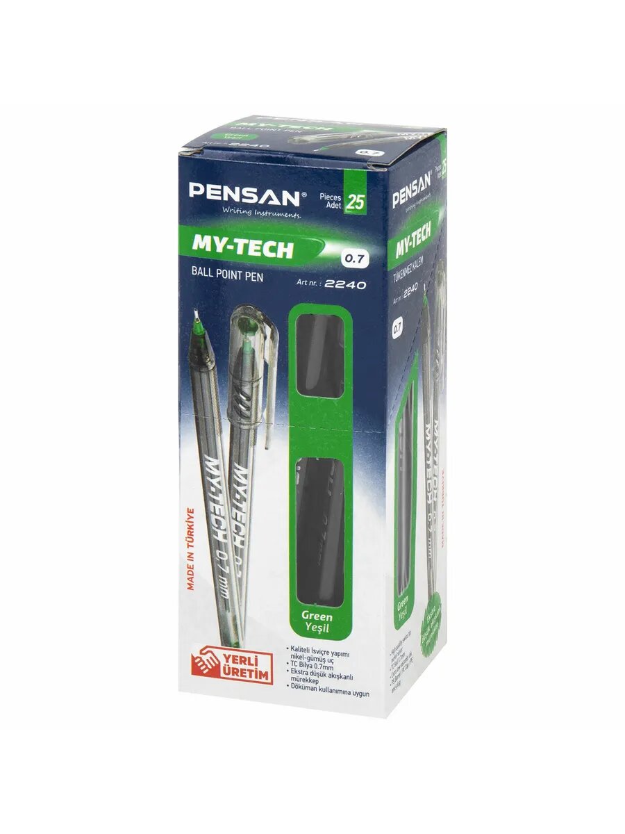Ручка шариковая масляная PENSAN "My-Tech", зеленая, игольчатый узел 0.7 мм, линия 0.35 мм, 2240/25