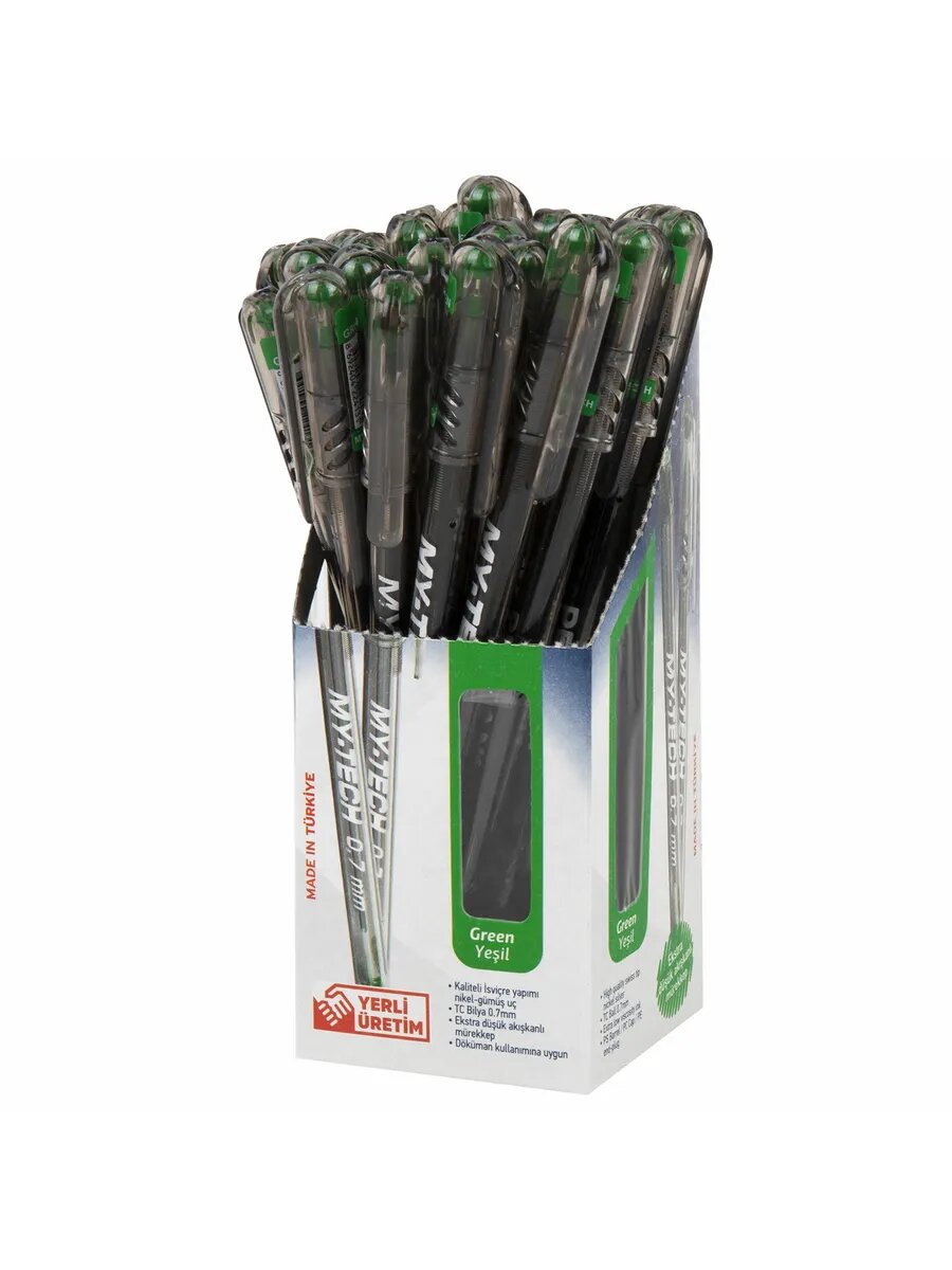 Комплект 50 штук, Ручка шариковая неавтомат. Pensan MY-TECH шарик 0.7мм, зеленая