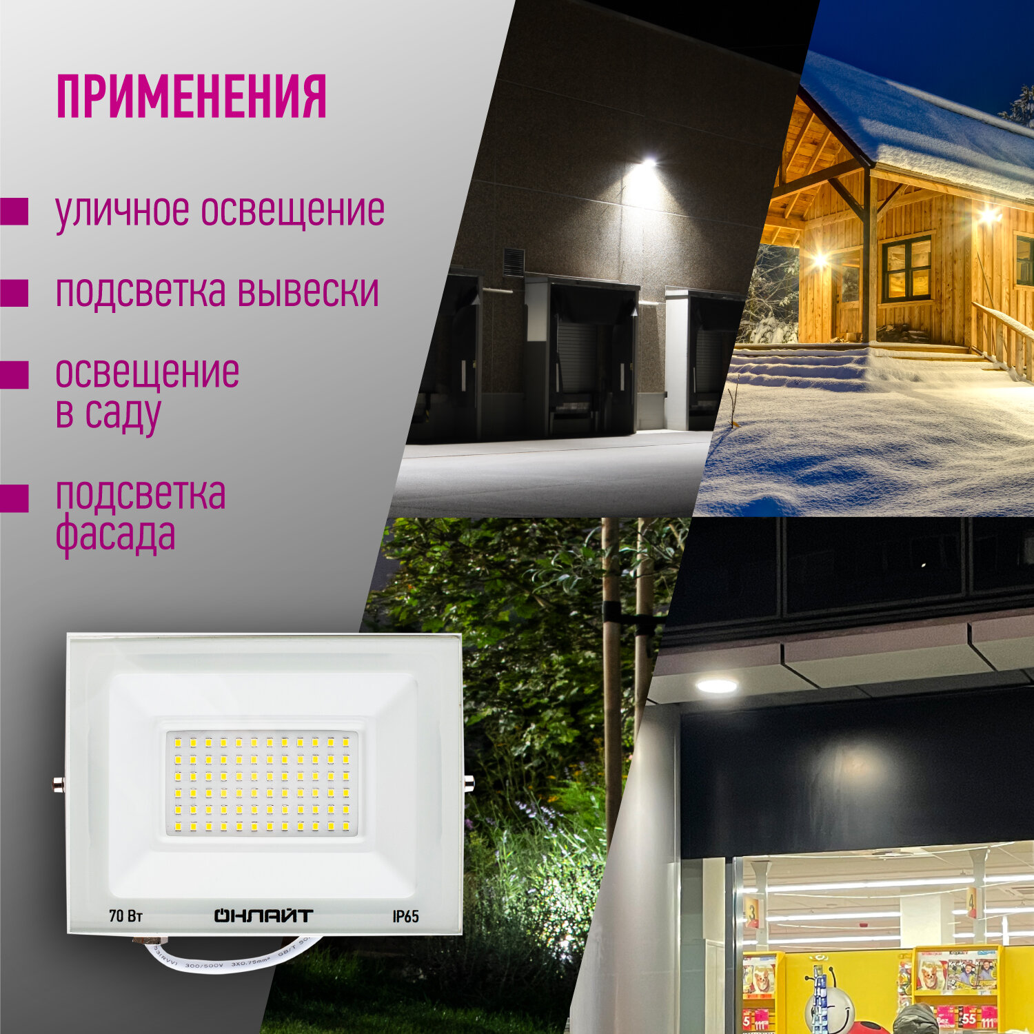 Купить Прожектор светодиодный онлайт 90 138, 70 Вт, холодный свет 6000К, IP65