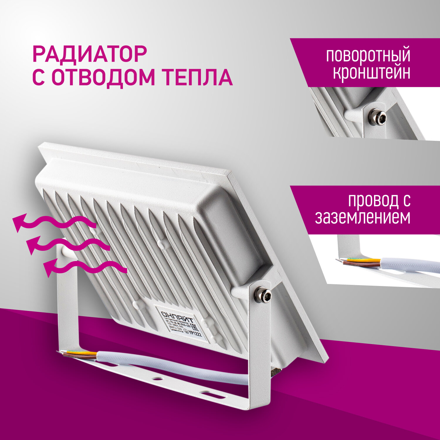Прожектор светодиодный 90 135 OFL-30-6K-WH-IP65-LED 30Вт 6000К IP65 2400лм бел. Онлайт 90135