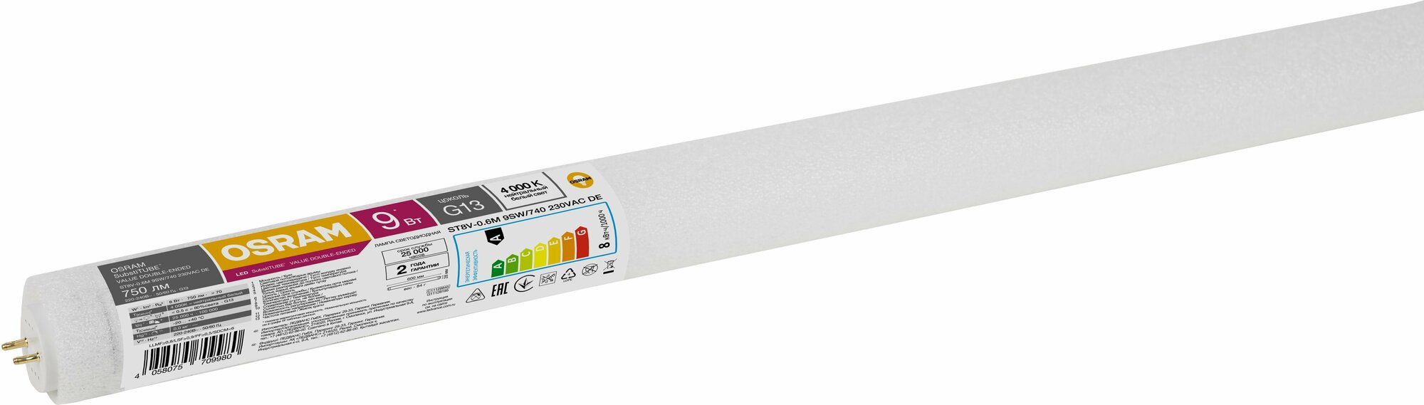 Лампа светодиод. (LED) трубч. T8 600мм G13 9Вт 750лм 4000К 230В (2-стор. подключ.) матов. Osram интересное: