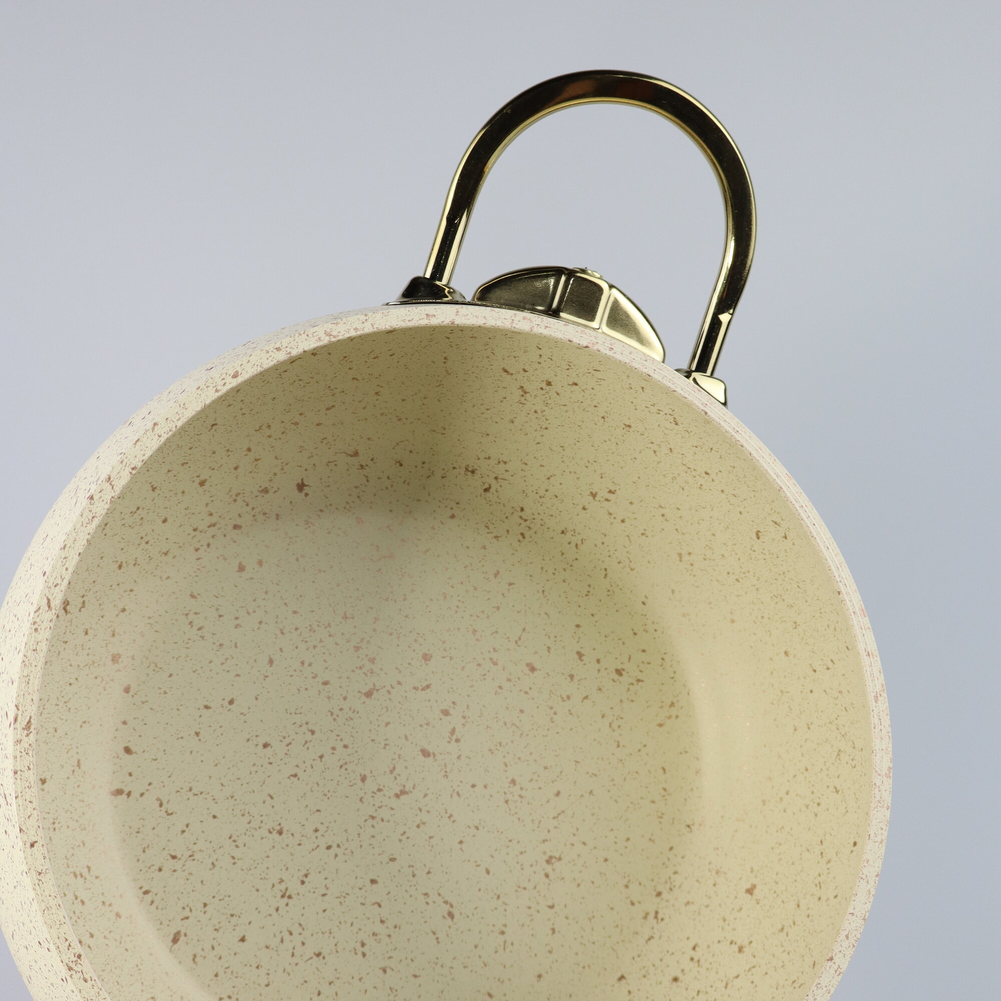 Кастрюля 3,5л с крышкой 22 см. Антипригарное гранитное покрытие. Цвет: Кремовый. O.M.S. Collection.