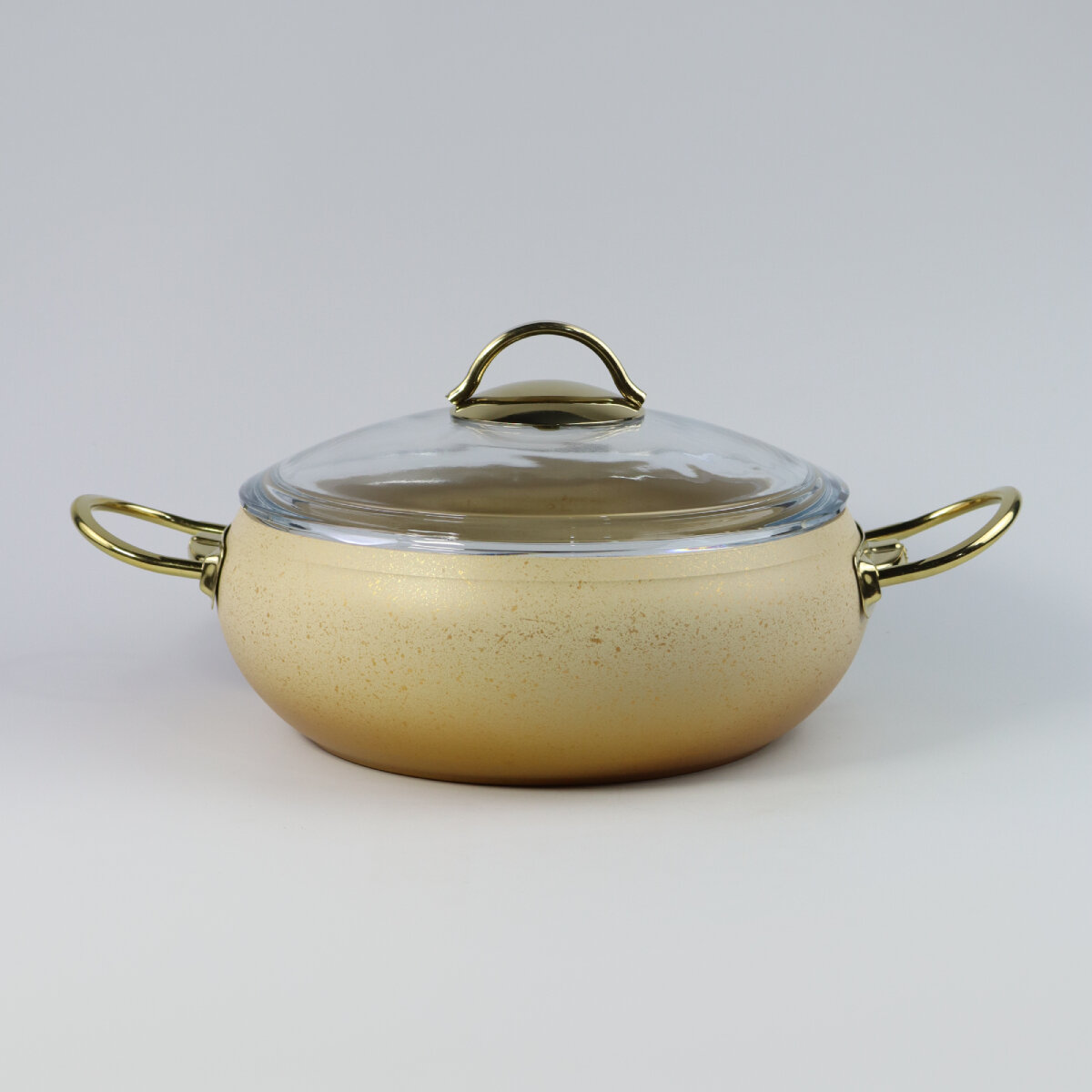 Купить Кастрюля 3,5л с крышкой 22 см. Антипригарное гранитное покрытие. Цвет: Кремовый. O.M.S. Collection.