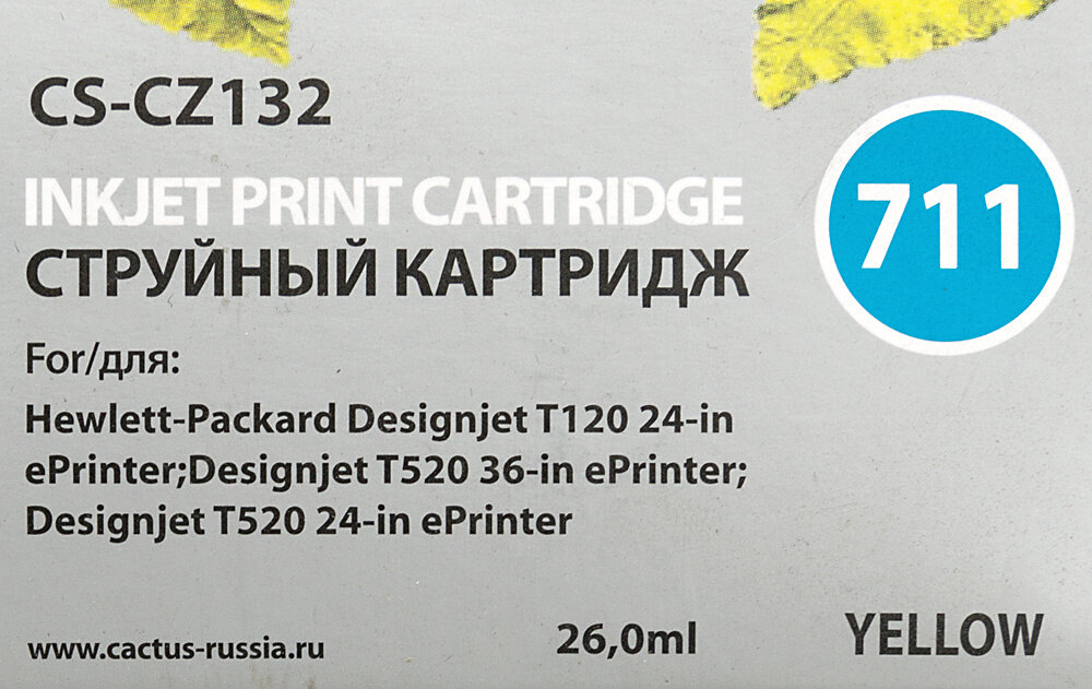 Купить Картридж струйный Cactus CS-CZ132 №711 желтый (26мл) для HP DJ T120/T520/530