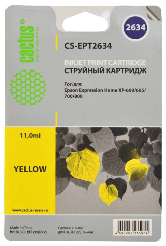 Картридж CACTUS CS-EPT2634 12.4ML YELLOW Expression Home XP-600/605/700/800