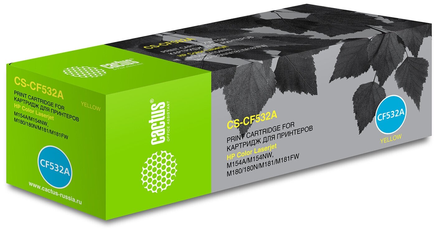 Картридж лазерный CACTUS (CS-CF532A) для HP LJ M180n/M181fw, желтый, ресурс 900 страниц