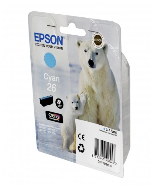 Купить Картридж струйный Epson T2612 C13T26124012 голубой (300стр.) (4.5мл) для Epson XP-600/700/800
