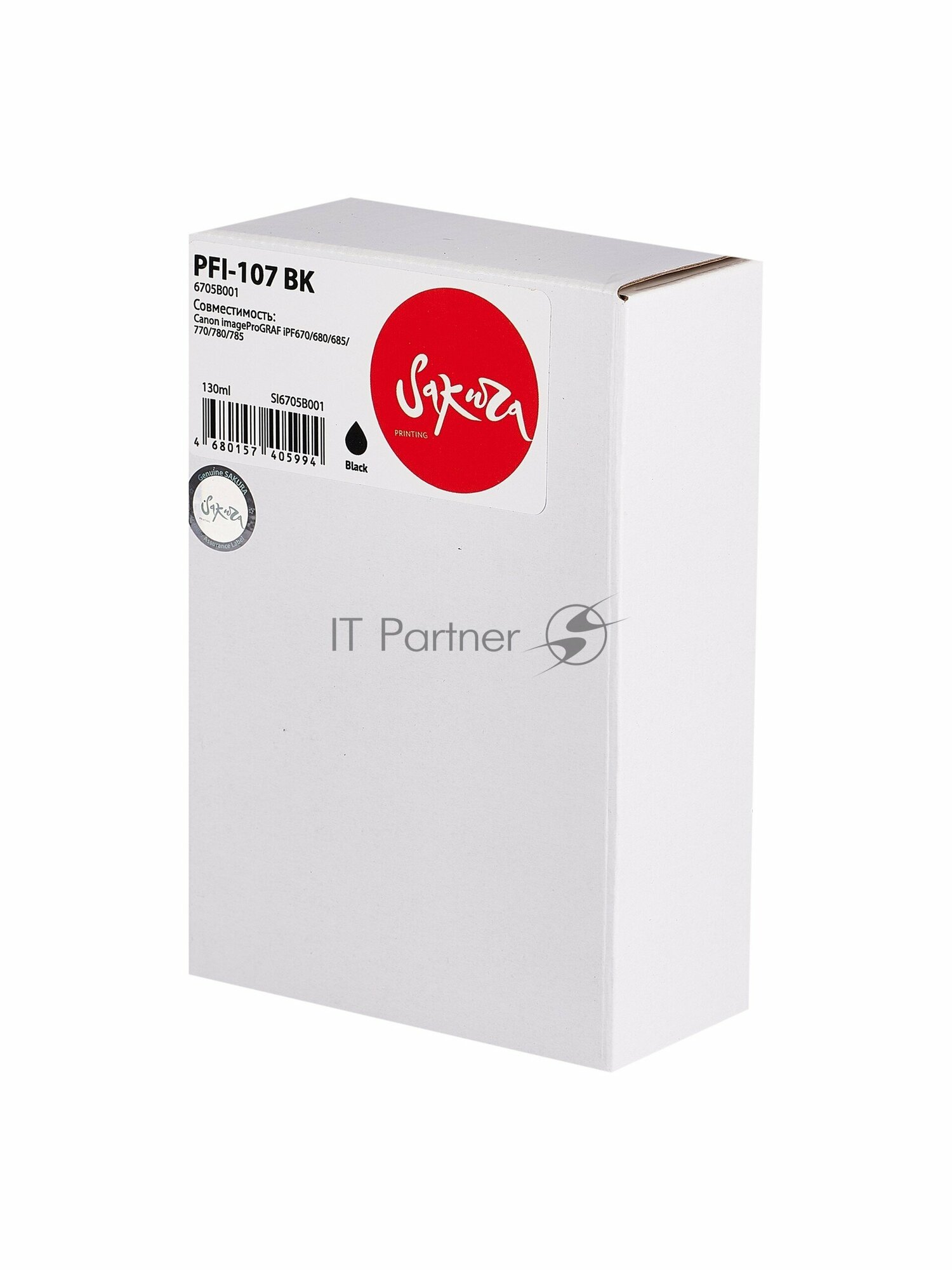 Картридж 6705B001 ( PFI-107 BK) для Canon, струйный, черный, 130 мл., Sakura