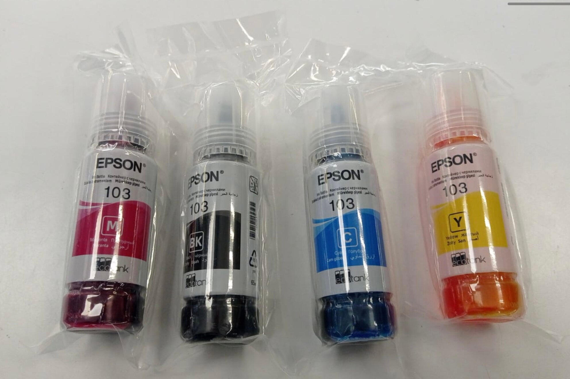 Чернила Epson T103 оригинал ( C13T00S1 ) комплект 4шт в технической упаковке (без коробки , вакуумный пакет ) интересное: