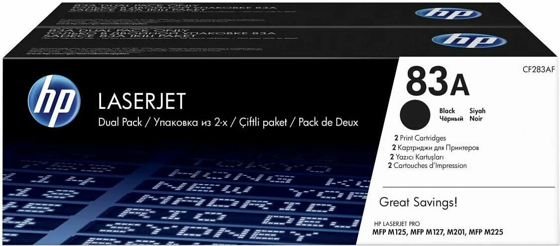 Картридж для лазерных принтеров HP 83A, черный, LJ Pro M201/MFP, M125, 2 шт (CF283AF)